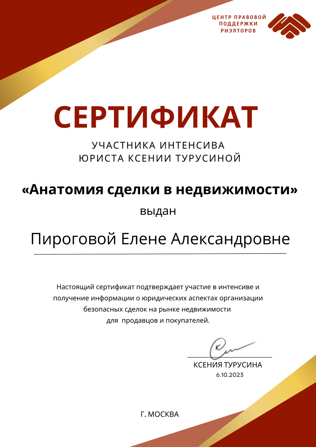 - сопровождение сделок