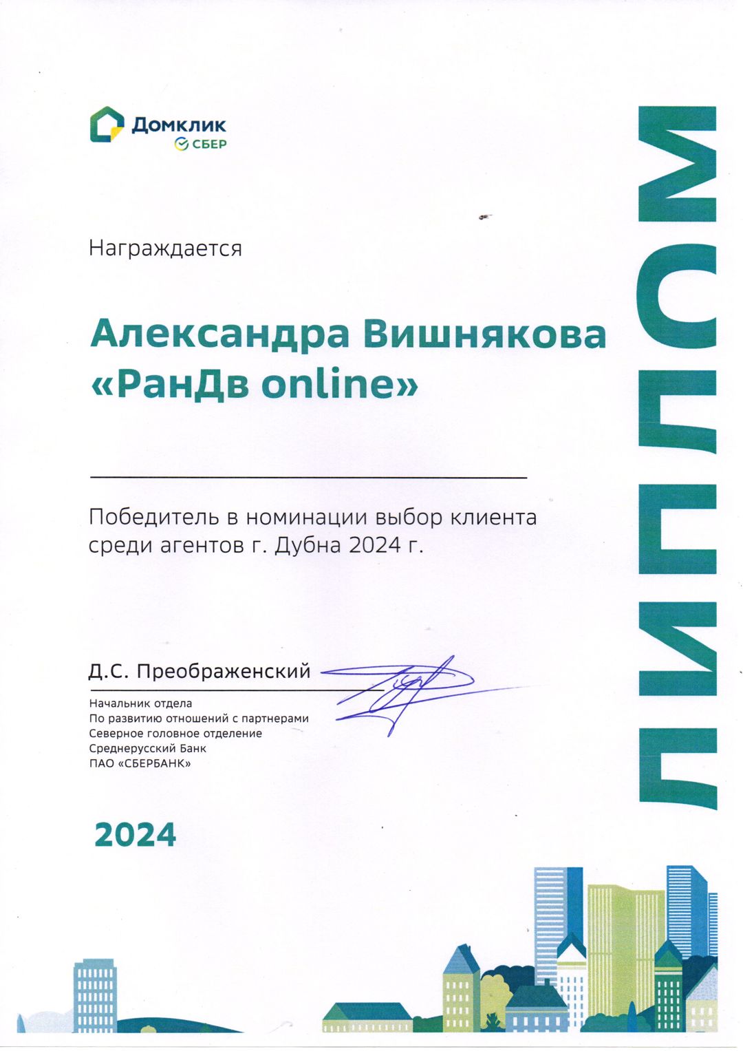 Благодарю за качественную работу риелтора Любовь, агентство РанДВ!Клиентоориентированность, связь 24/7 по всем вопросам касающемся покупки недвижимости. Вежливость, честность, пунктуальность, индивидуальный подход. Все прошло отлично!