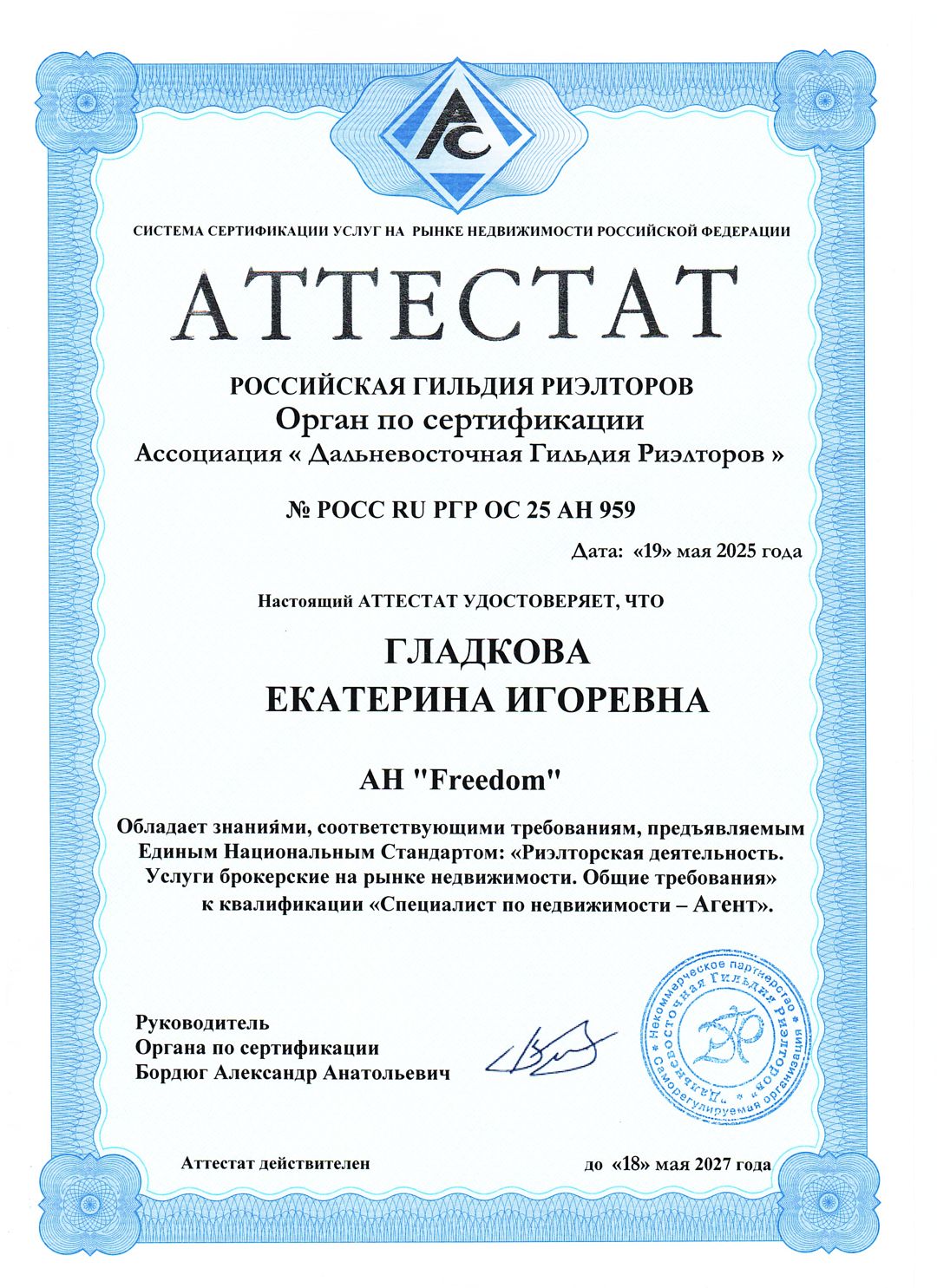 Оказываем квалифицированную помощь в приобретении и продаже недвижимости. Специализируемся как на вторичном, так и на первичном рынке недвижимости Приморского края. А также осуществляем сделки с дачами, частными домами, земельными участками и коммерческой недвижимостью.