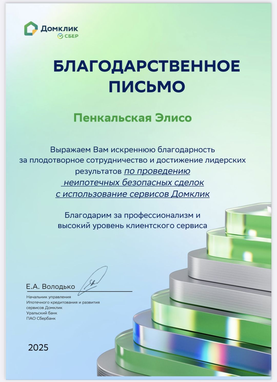 Элисо, прекрасный опытный риелтор, помогла подобрать жилье и провести качественно сделку. Никаких проблем не возникло, все прошло на высшем уровне, специалист отлично разбирается в документах и юридической стороне процесса и всех тонкостях. Очень умная и эрудированная, все согласовала своевременно, ее профессиональными данными можно только восторгаться! Однозначно рекомендую данного специалиста....