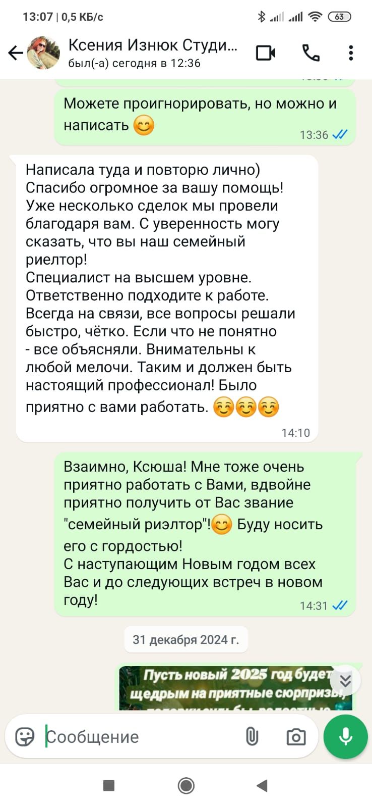 Суфия ГабдрахимоваРиелтор ответил 29 декабря 2025Спасибо большое, Ирина , за высокую оценку моей работы. Думаю, посотрудничаем ещё.