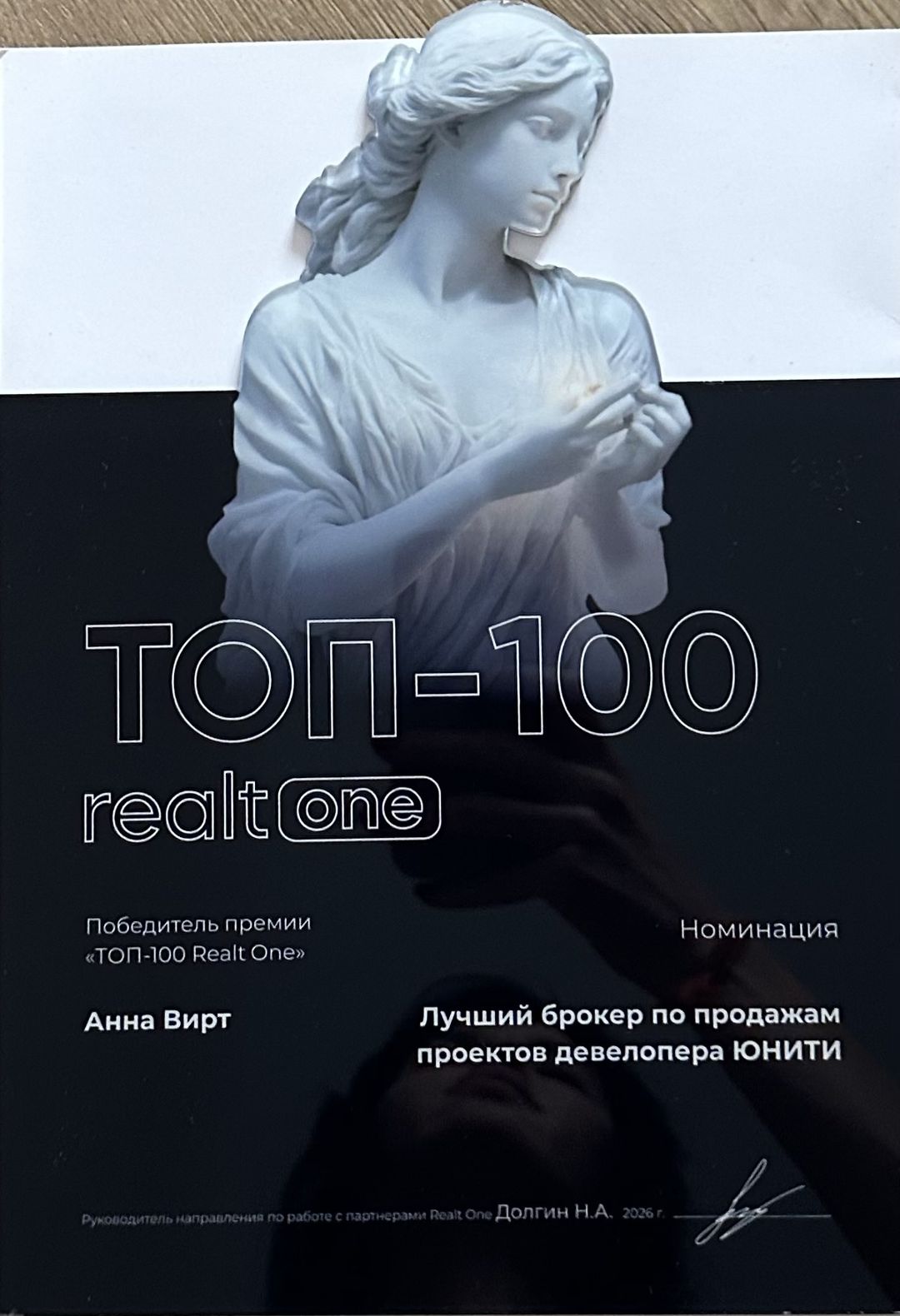 Добрый день! Меня зовут Анна Вирт– я эксперт по подбору новостроек и основательница одноименного агентства. Специализация-покупка жилой и коммерческой недвижимости для жизни и инвестиций. Имею статус «ТОП брокер 2025» по новостройкам Сибири, «Лучший партнер» у 2х топ-застройщиков Новосибирска в номинации «количество проданных квартир». Мы единственная компания в городе, которая оказывает...