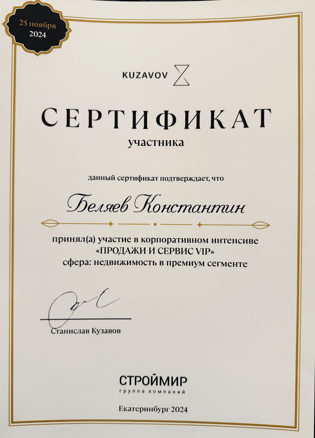 Константин-уникальный образец профессионального риелтора. Грамотные советы, пунктуальность, конкретность и ответственность- вот главные его качества. Очень нам помог в нашей не простой сделке, продажа, покупка, доли детей, ипотека. Все сделки прошли в спокойном темпе, без тревоги и проблем.