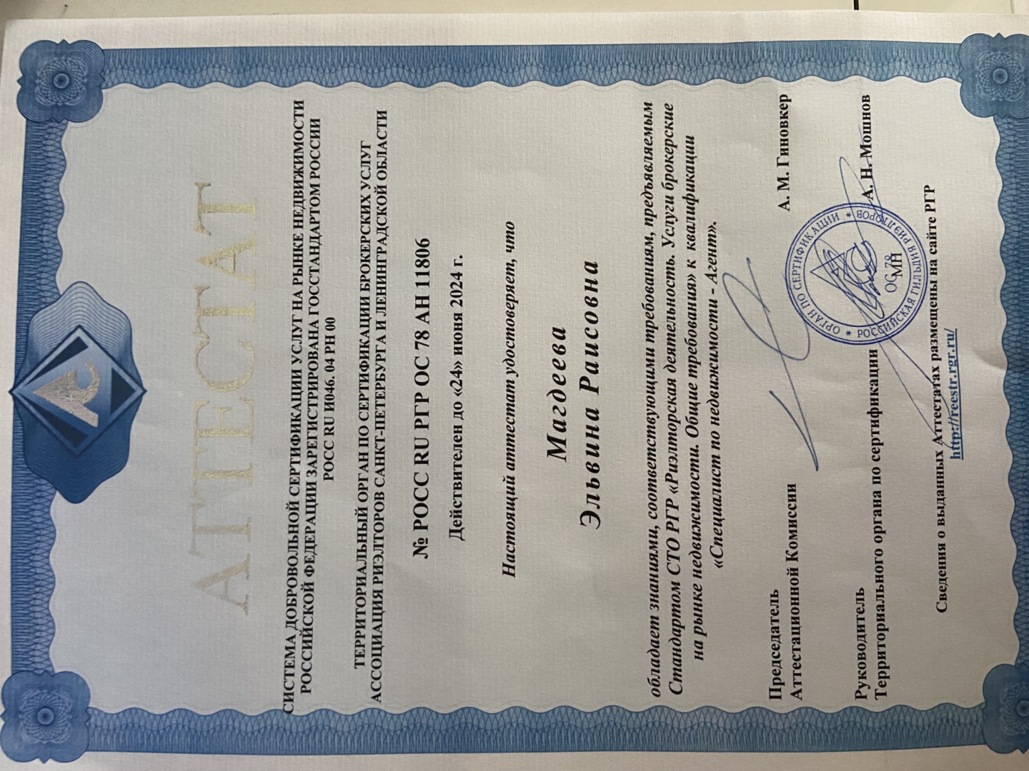 Аттестат № РОСС RU РГР ОС 78 АН 11806