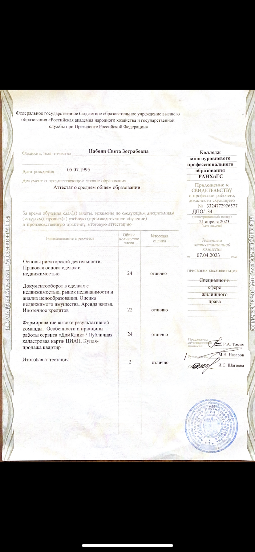 Светлана помогла купить дом и продать квартиру. Все очень быстро, четко и по делу. Быстро вышли на сделку. Всегда на связи, ответит на любые интересующие вопросы, всегда поможет и ни в чем не откажет, любой каприз клиента не оставит не замеченым😊. Отличный риелтор и ЧЕЛОВЕК С БОЛЬШОЙ БУКВЫ!!!