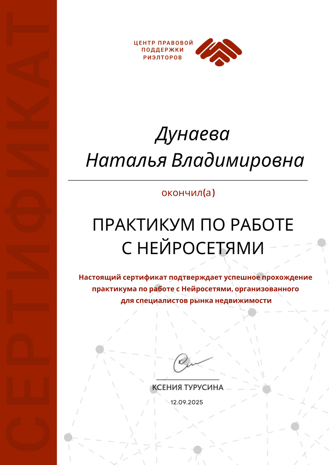 Очень понравилась работа Натальи. Все сделала быстро и грамотно. Одобрила ипотеку, предложила хорошего застройщика. Дом уже построен. Все хорошо. Уже заехали. Моя благодарность Наталье за профессиональную помощь.