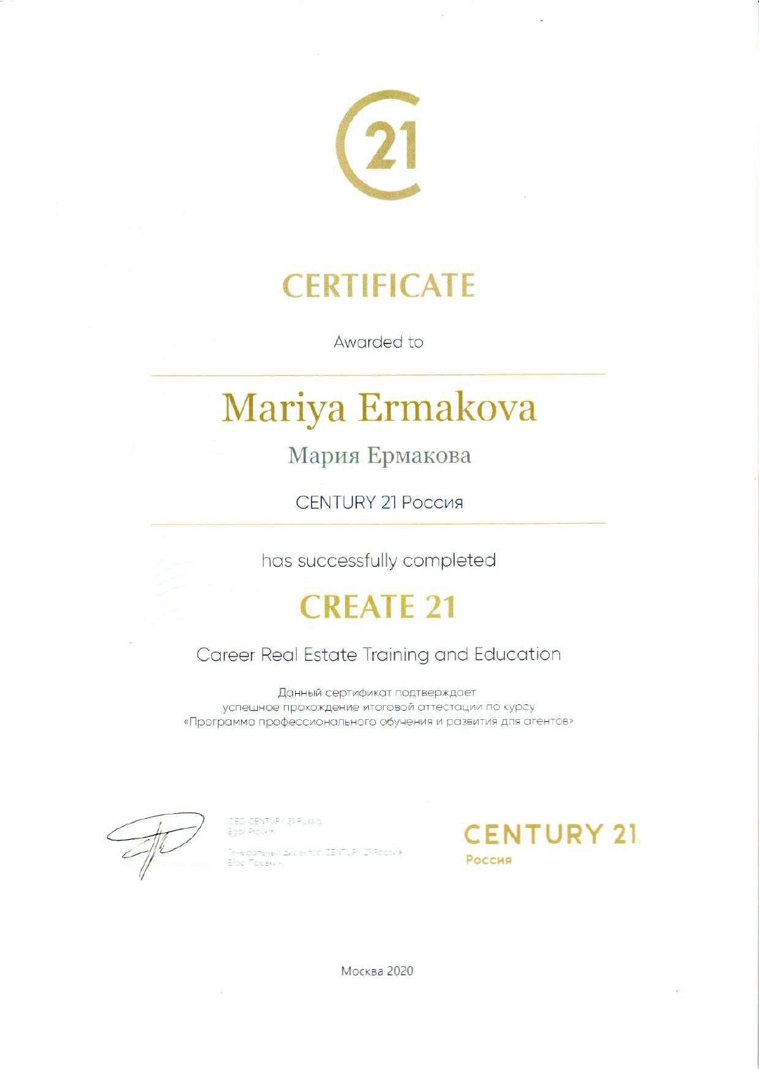 Огромное спасибо Ермаковой Марии сотруднику компании CENTURY 21 ПЕРСПЕКТИВА, которая помогла с покупкой и продажей квартиры, собрать быстро необходимые документы для сделки. А так же за её тактичность, пунктуальность, внимательность. Это профессионал в своей работе.