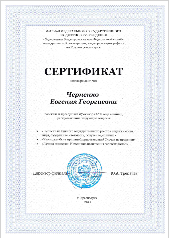 Хотим выразить огромную благодарность Евгении Георгиевне, за проделанную работу,высокий уровень профессионализма в своем деле,максимальный учет пожеланий,умение просто и доходчиво объяснить тонкости нашего законодательства, четкий план действий. Евгения спасибо огромное за вашу работу, очень признательны за помощь. Все грамотно, четко а главное честно! Побольше бы таких как Черненко Евгения...