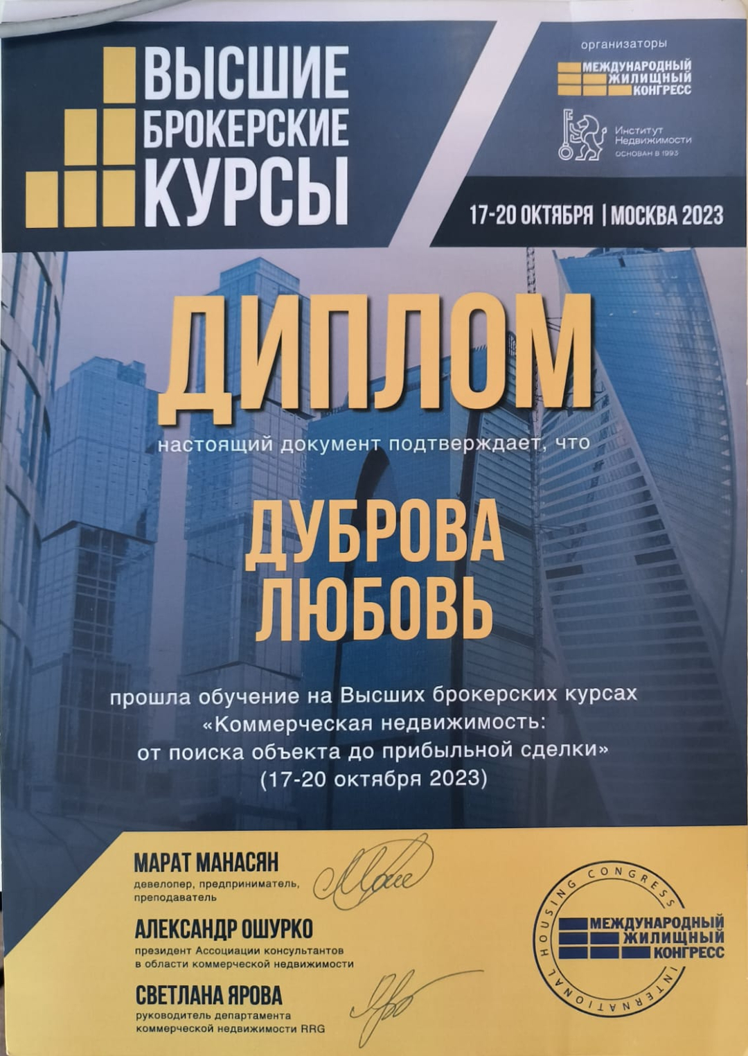 - поиск и подбор объектов жилой и коммерческой недвижимости