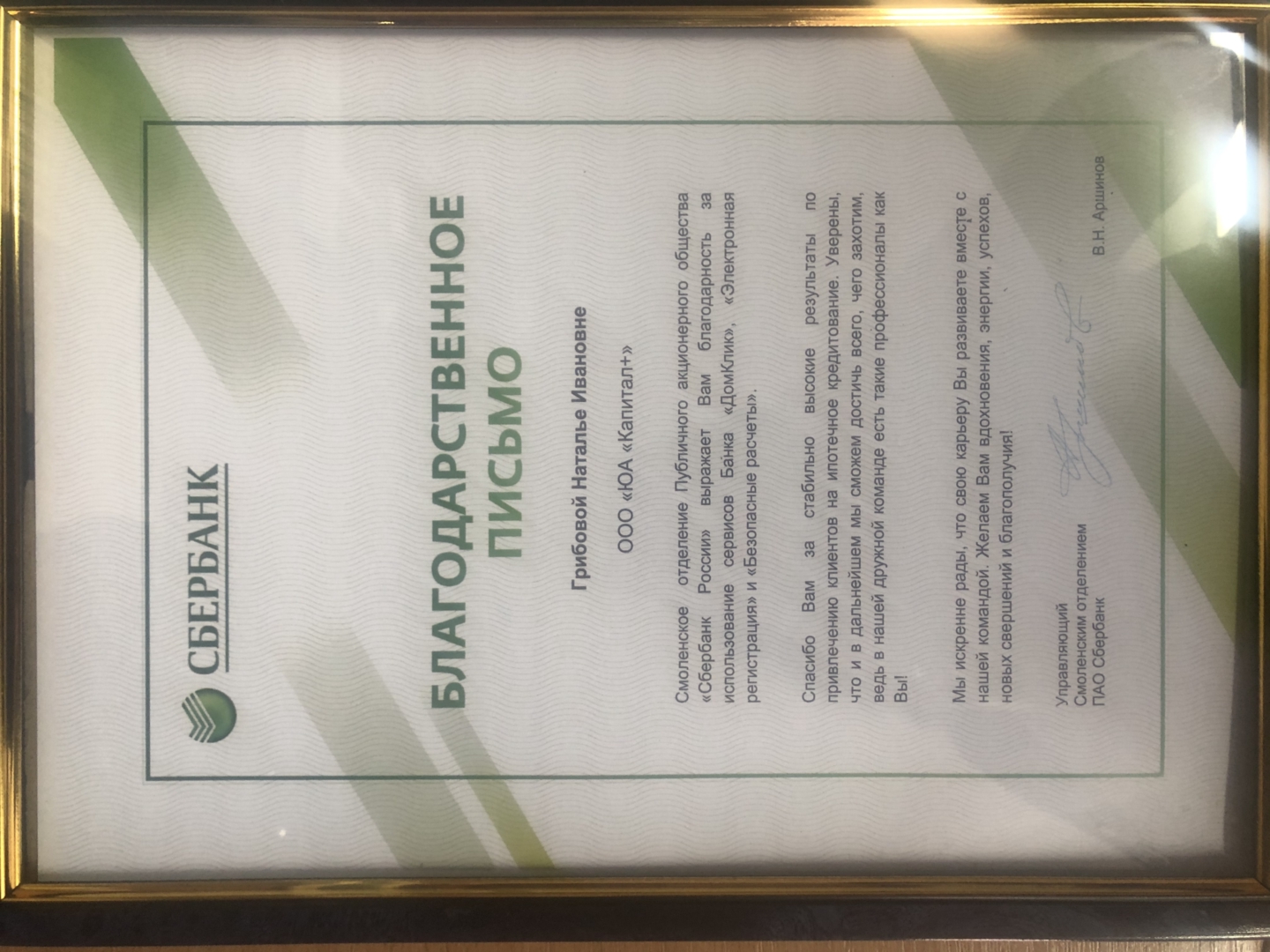 Хочу выразить огромную благодарность Грибовой Наталье за проделанную работу в организации покупки квартиры. Спасибо за оформление всех сопутствующих документов в короткие сроки и грамотно проведенную сделку.