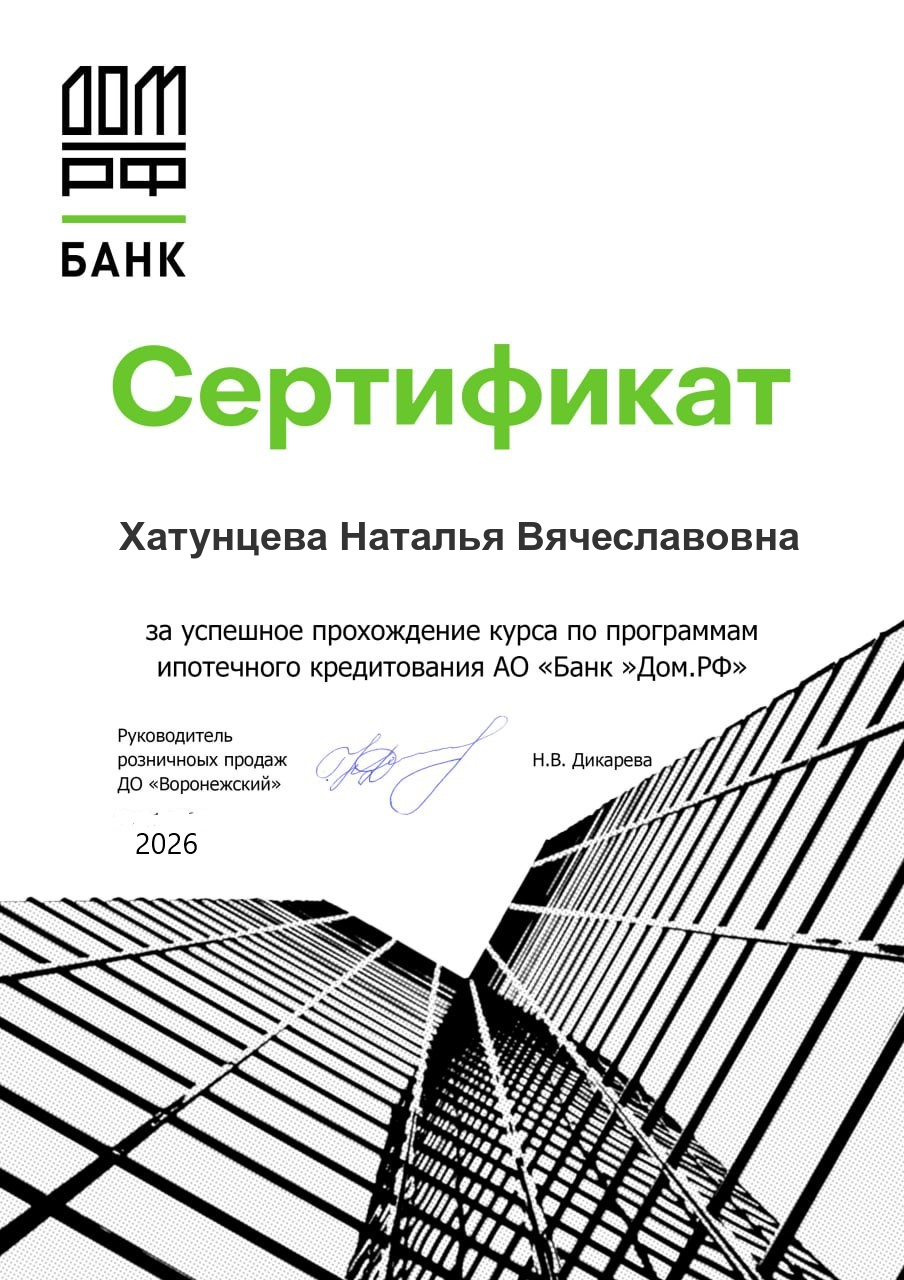 Рекомендую обращаться к Наталье. Порядочная, культурная, грамотная риэлтор, всегда на связи, помогла в нашем сложном случае. Проверила все документы, всегда все разъясняла, спокойно дохотчиво, хотя покупали первую квартиру в ипотеку очень волновались как все сделать правильно. Она очень помогла решить наш вопрос, все чесно, грамотно. Сами мы не смогли бы купить квартиру и оформить ипотеку. Сделка...