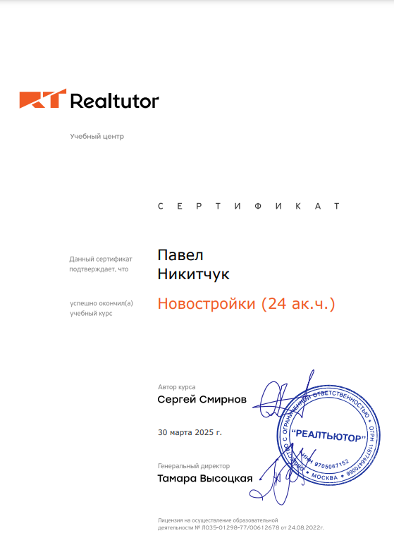 Очень довольна профессиональной работой Павла Никитчука, Интеллигентный, грамотный, вежливый, всю оформление и абсолютно всю работу по сделке сделал за меня, пенсионерку, при чем он был со стороны продавца, я получила бесплатную услугу и его терпение и профессионализм во всем! Спасибо !!! Рекомендую всем!