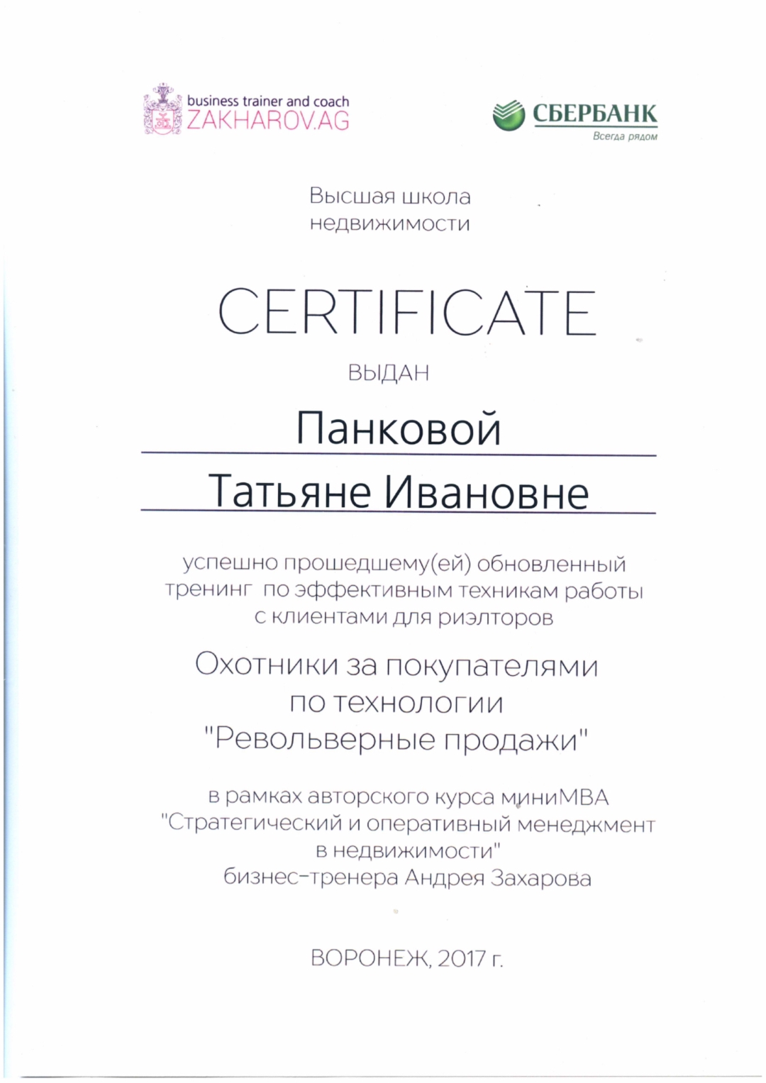 Выражаю огромную благодарность Панковой Татьяне Ивановне . Живу за 3500 км от Воронежа на севере , подобрали отличную квартиру все сделали сами, я только приехал в банк подписал документы и все я владелец замечательной Квартиры , все очень быстро , а самое главное в наше время без какого то обманы , все чеки квитанции все предоставлялось ещё раз напомню находясь на большом расстоянии . Огромное...