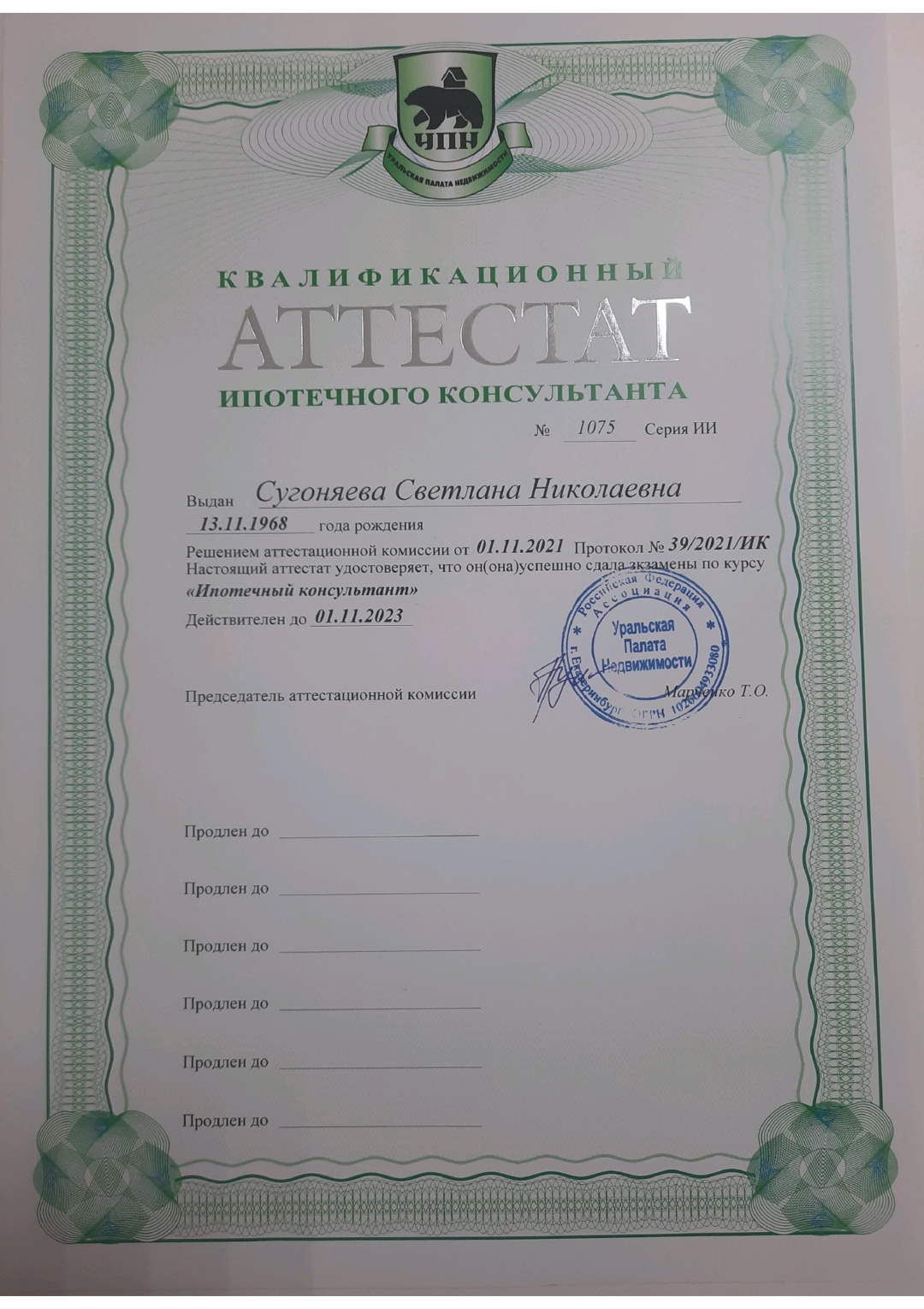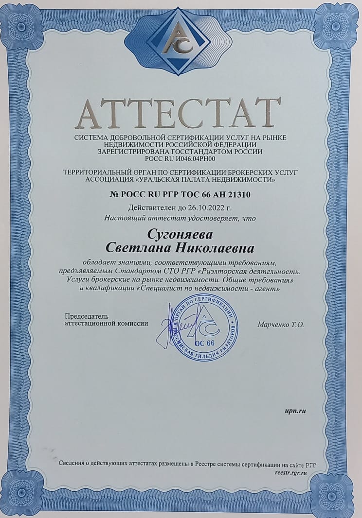Хотел бы выразить благодарность Сугоняевой Светлане Николаевне за высокий уровень профессионализма, юридическую грамотность, отзывчивость и компетентность. Остались только положительные впечатления от её работы. Спасибо за помощь в поиске и покупке квартиры!