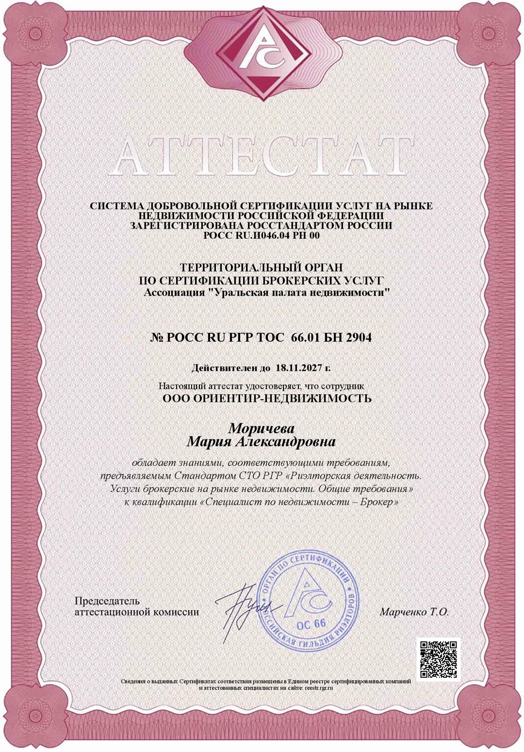 Мария Моричева очень грамотный специалист, заинтересованный, отзывчивый и очень приятный человек. Процедура подбора и оформление сделки под руководством Марии прошли на отлично, всю работу Мария выполняла быстро, четко и всегда поясняла свои действия. С Марией возник полный контакт сразу же, она буквально сделала все сама, не вовлекая меня в процесс и всегда была на связи, рассказывая что как и...