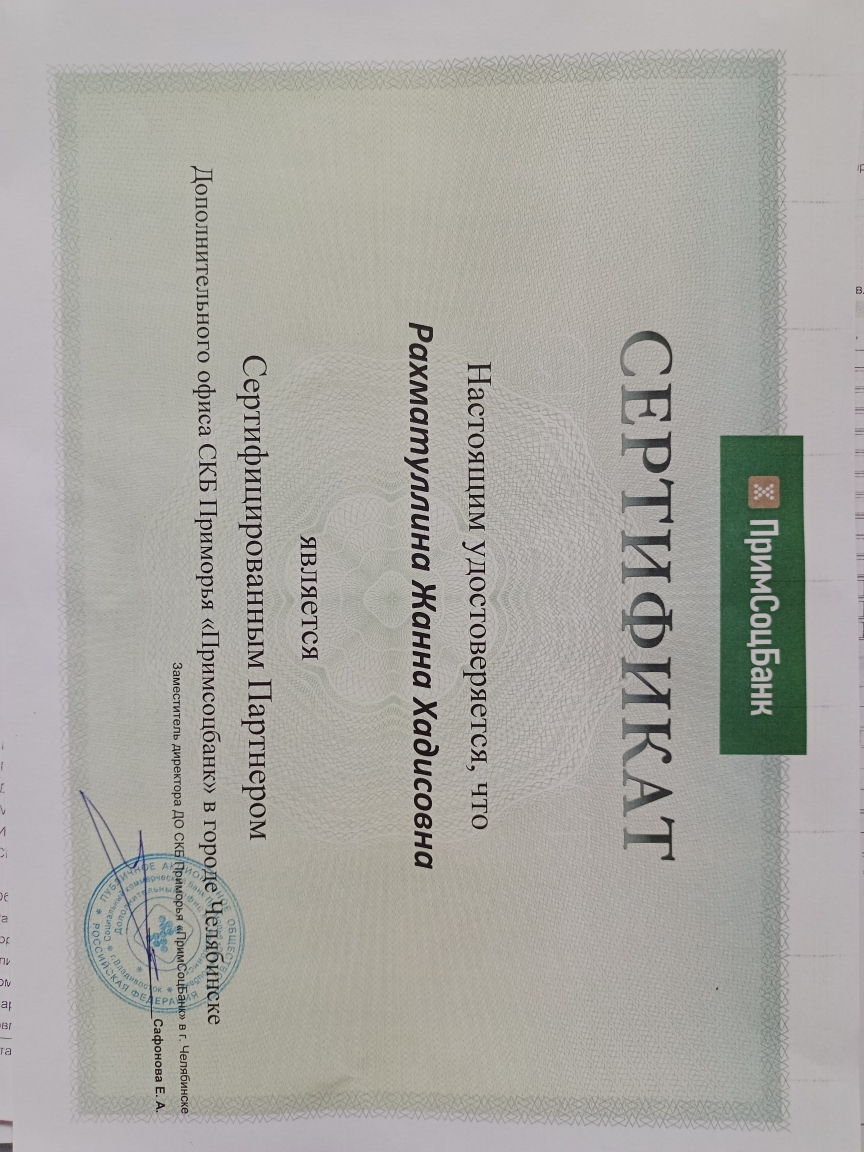 Жанна Хадисовна выражаю благодарность за профессионализм, ответственность, качественный и тактичный подход в работе с клиентами. В процессе работы по сбору и оформлению документов проявила себя как грамотный, высококвалифицированный специалист.