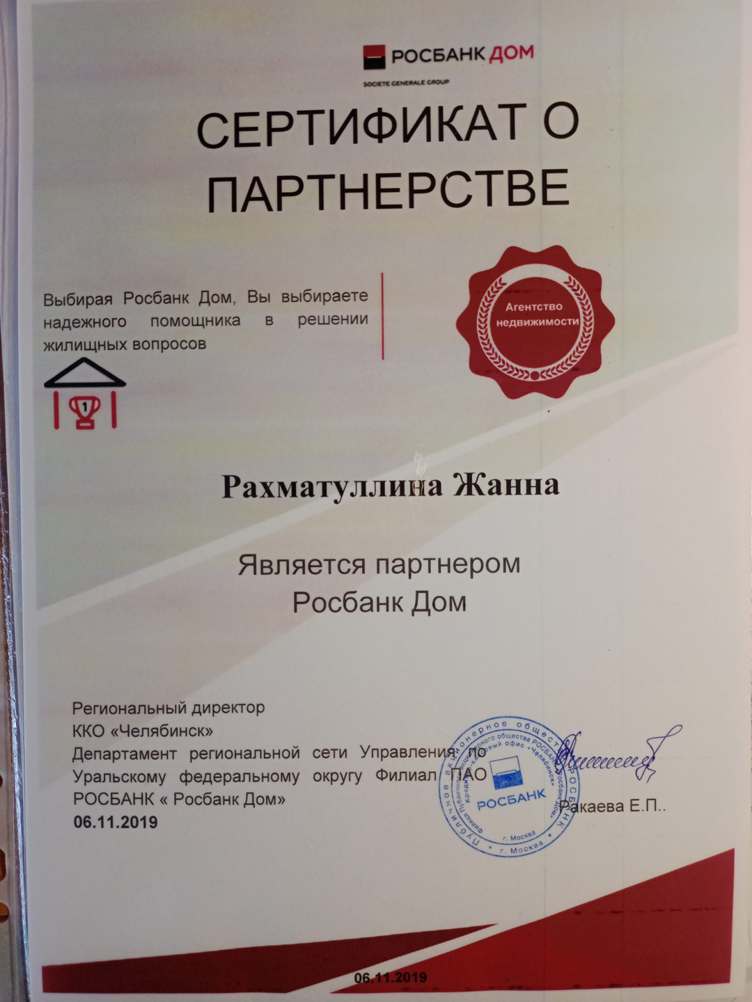 Огромное спасибо риелтору Рахматуллиной Жанне за её профессионализм, ответственность и внимательность.
