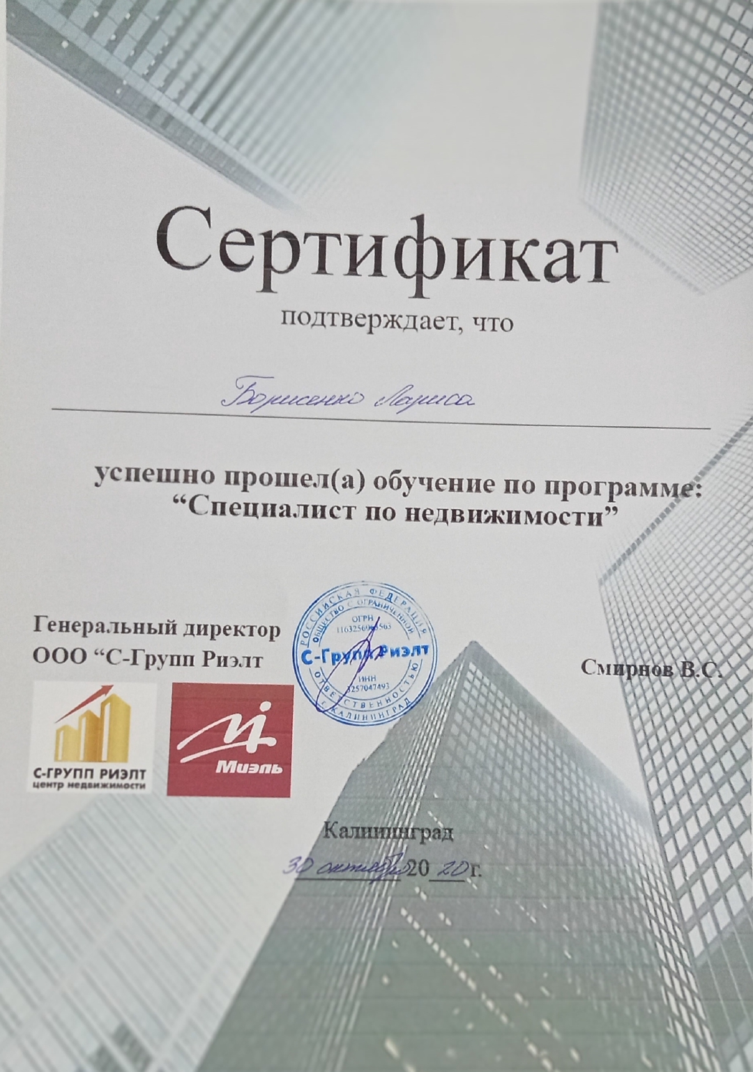 С-ГРУПП РИЭЛТ профессиональная риэлторская Компания! На рынке недвижимости Калининграда с 2016 года. Три года мы работали по франшизе Федеральной компании МИЭЛЬ и набрали хороший опыт и репутацию! Нас советует друзьям! Смотрите отзывы о нас в любых источниках!