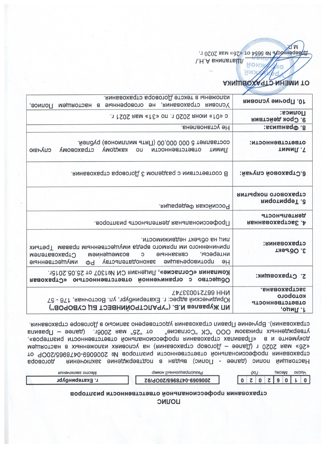 - заключение договора