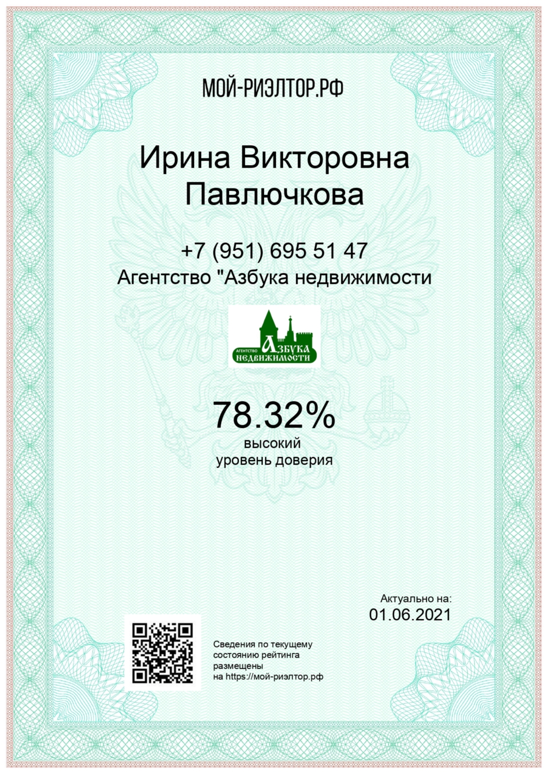 Хочу сказать огромное спасибо.Это грамотный и добросовестный риэлтор, специалист, и просто приятный человек. Очень помог при покупке квартиры, сделка прошла быстро и без проблем. Смело рекомендую этого риэлтора.