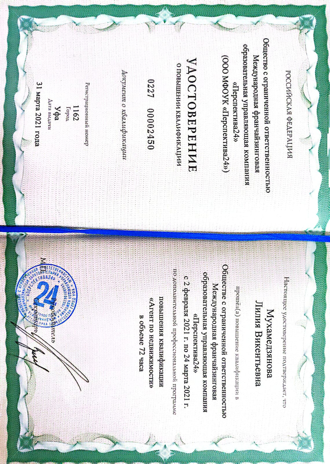 Выражаю огромную благодарность Мухамедзяновой Лилии за услуги, оказанные при покупке квартиры! Все на высшем уровне, не было ни капли сомнения в профессионализме и качестве предоставляемых услуг. Оценка 10 из 10 возможных. Большое спасибо!
