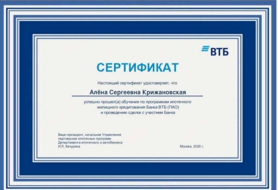 Благодарю Алёну Сергеевну за ее работу. Всё понятно объясняет,всегда на связи ,очень профессиональный специалист. Большое спасибо за помощь в получении ипотеки. Рекомендую Алёну Сергеевну,она отличный риэлтор и хороший человек.