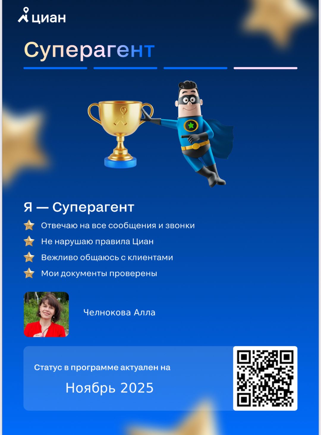Алла ЧелноковаРиелтор ответил 11 августа 2025Спасибо большое, Наталья сотрудничество с Вами было приятно и профессионально грамотно.