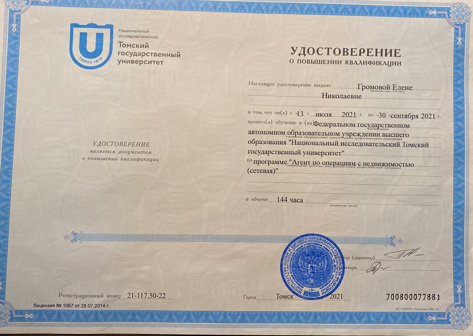 Выражаю искреннюю благодарность Громовой Елене за проделанную работу!!!Честная работа, позитивный настрой,четкий план действий, высокий уровень профессионализма, умение владеть собой, умение анализировать и пользоваться информацией, настойчивость, индивидуальный подход и теплые деловые отношения к клиентам, максимальный учет пожеланий, умение просто и доходчиво объяснить сложные тонкости нашего...