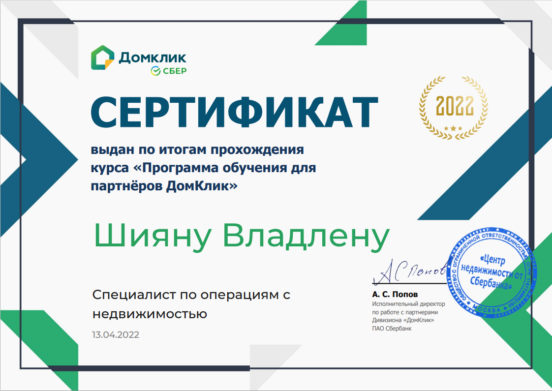 Приветствую Вас на моем профиле Домклик! Меня зовут Владлен, я специалист по операциям с недвижимостью. Сотрудничая со мной Вы можете быть уверенны в том что Ваша сделка с недвижимостью в надежных руках.