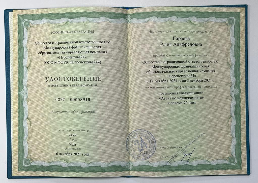 Хотим поблагодарить Алию Альфредовну за отлично проделанную работу. Поиск,сделка, оформление прошли очень быстро. Алия Альфредовна - Риелтор с большой буквы, грамотный профессионал, чувствует, что нужно клиенту, а самое главное, очень честный и добрый человек. Нам посоветовали обратиться именно к ней, и мы не ошиблись, все прошло на отлично. Спасибо огромное. Здоровья вам и успехов в работе!