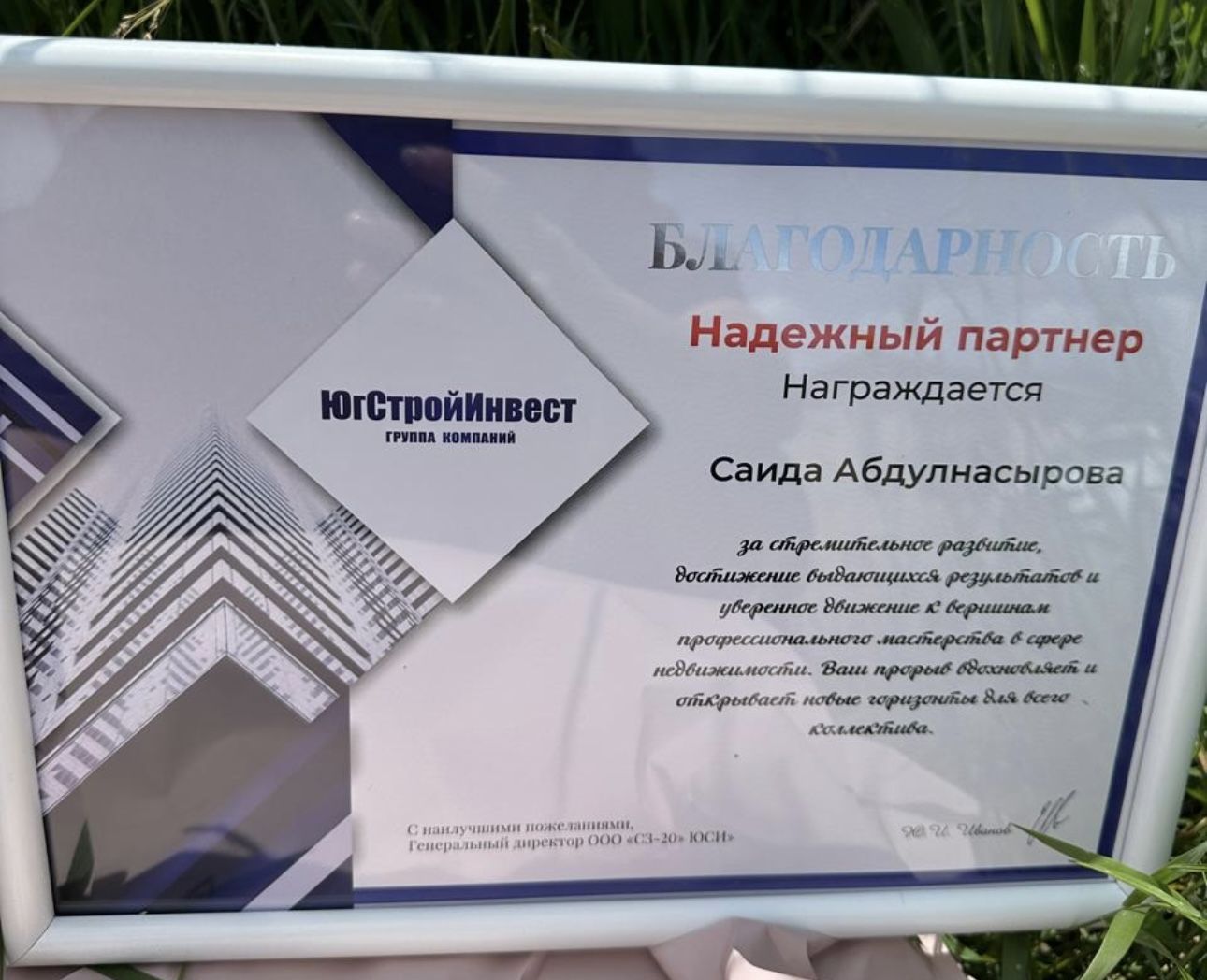 Хочется по благодарить и выразить свою признательность агенту Саиде в первую очередь за ее терпение! У меня кредитная история была не очень,все время приходили отказы.Она помогла мне ее улучшить и купить квартиру мечты в г.Ставрополь.