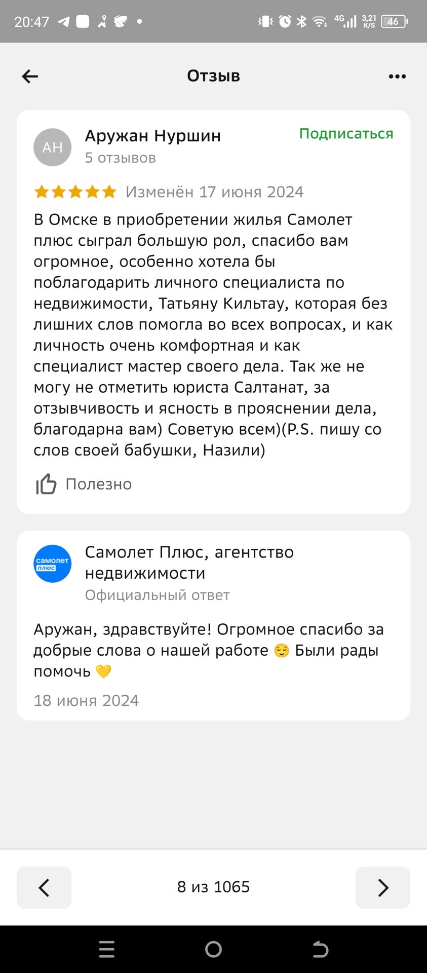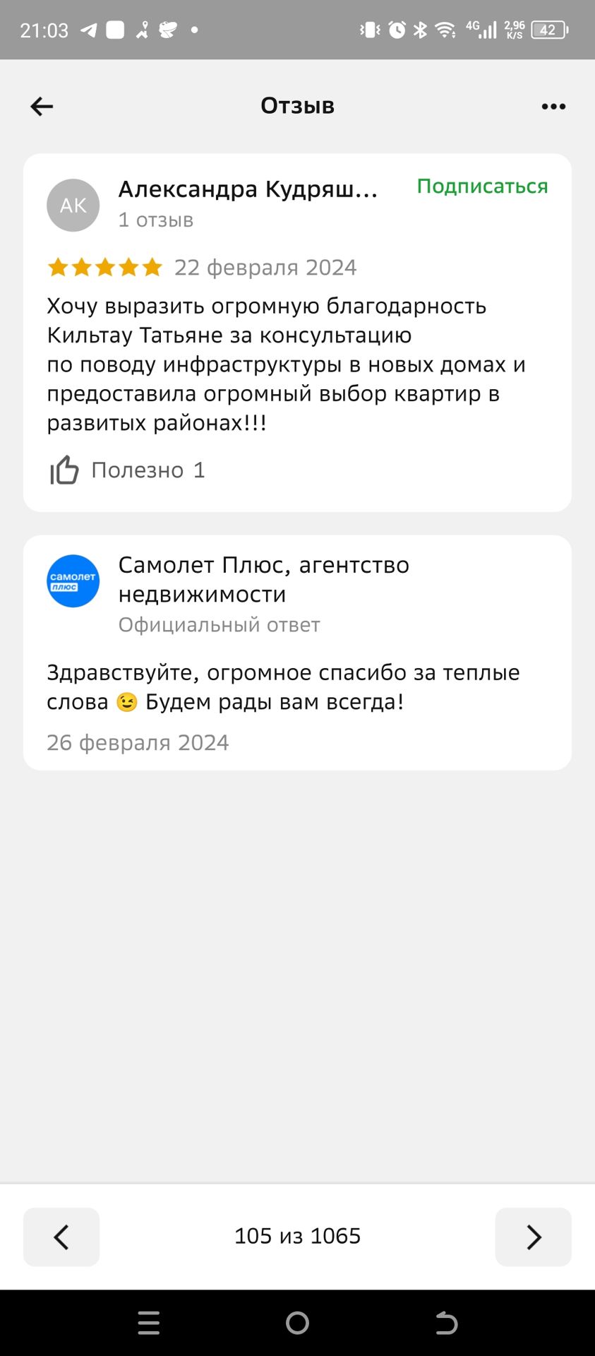 1 отзыв о проведенных сделках за всё время