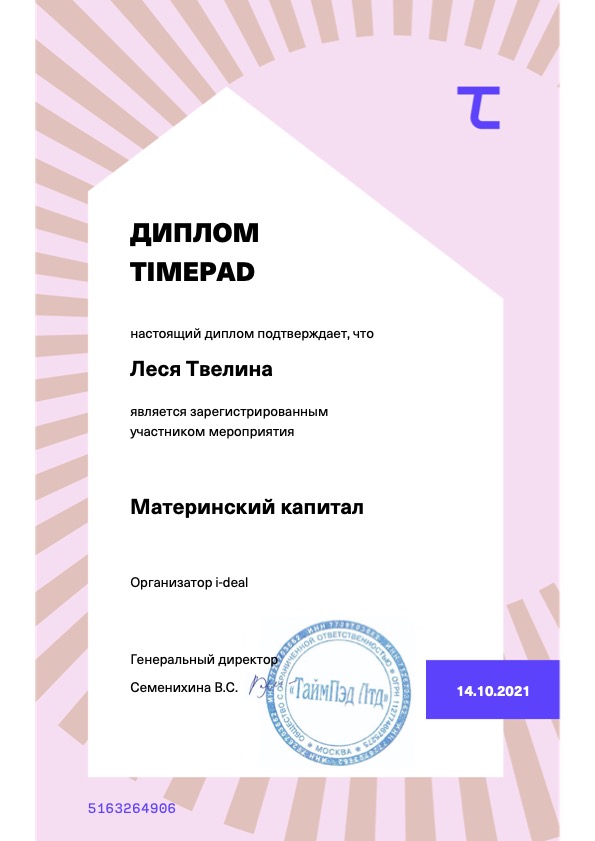 Благодарю Лесю Твелину за профессионализм, отзывчивость и компетентность! В короткие сроки было найдено подходящее жильё, проверены и собраны все необходимые документы. Сделка прошла быстро и безопасно. Леся, большое Вам спасибо!☀