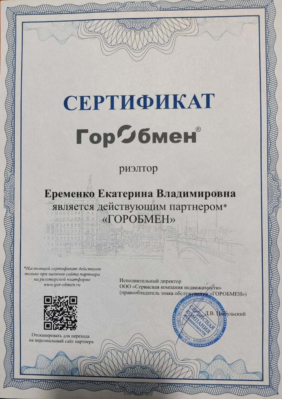 ГорОбмен - Объединение профессионалов рынка жилой недвижимости. Специализация: продажа и покупка жилой недвижимости, равноценный обмен, обмен с доплатой, обмен на загородную недвижимость, обмен на новостройку, разъезд, съезд. Платиновый партнёр СБЕР банка. Сеть офисов в Москве: - м. Новые Черемушки, ул. Профсоюзная, д. 64, кор. 2 - м. Ленинский проспект, ул. Вавилова, д. 6 - м. Киевская,...