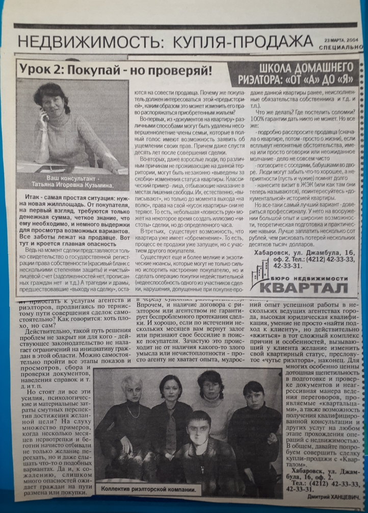 - поиск и подбор объектов жилой и коммерческой недвижимости