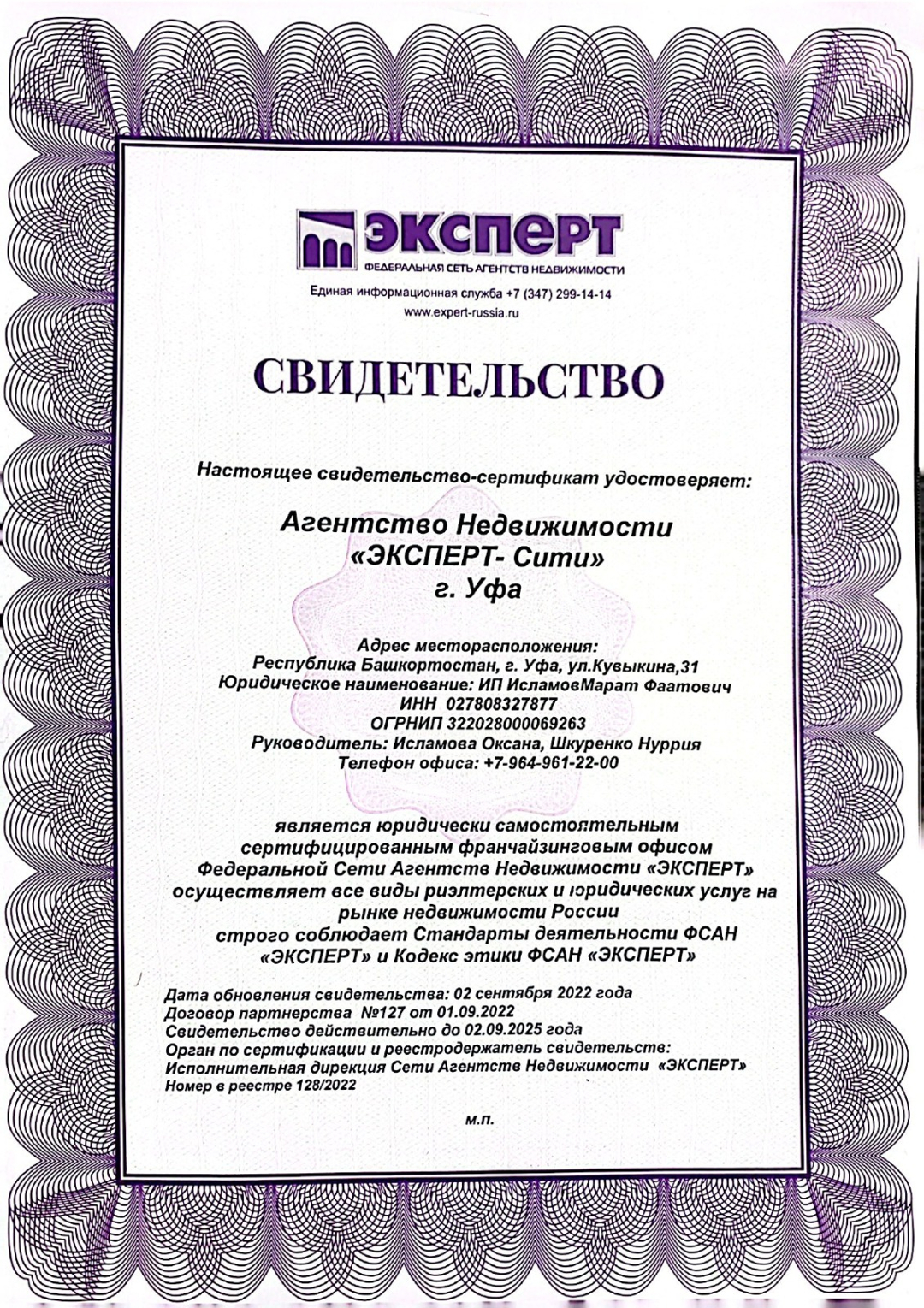 Сеть Агентств Недвижимости «ЭКСПЕРТ» представляет собой более двадцати пяти офисов и консультационных пунктов, расположенные в городах: 12 офисов в г Уфе, Архангельск, Березники, Стерлитамак, Нефтекамск, Чебоксары, Оренбург, Ялуторовск, (Тюменская область), Пермь, Янаул, Нагаево, Иглино, два офиса компании в Казани и т.д. Первое агентство недвижимости Компании было создано 27 апреля 1998...