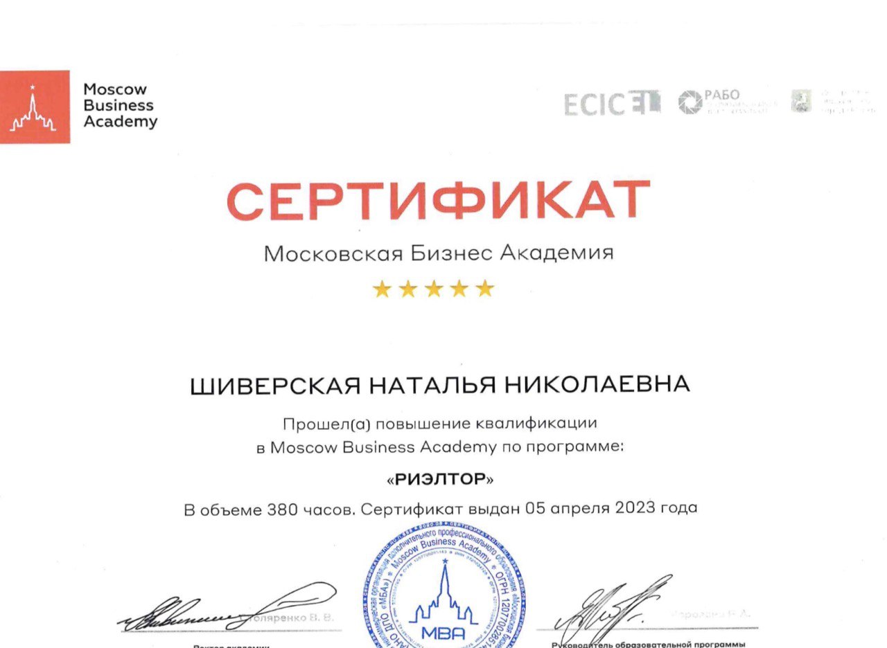 Хотим выразить искреннюю благодарность Наталье Шиверской за проделанную работу!!!Честная работа, позитивный настрой, четкий план действий, высокий уровень профессионализма, умение владеть собой, умение анализировать и пользоваться информацией, настойчивость, индивидуальный подход и теплые деловые отношения к клиентам, максимальный учет пожеланий, умение просто и доходчиво объяснить сложные...
