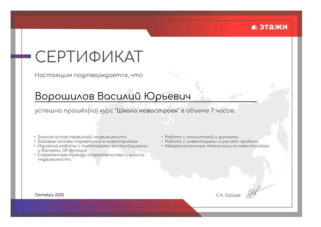 Василий - чёткий, конкретный, деловой специалист. Профессионал! Знает город, знает лучшие предложения, знает перспективы развития города, знает где лучше всего проинвестировать в недвижимость (цены вырастут в ближайшее время). Это очень круто! Квартира, которую мы купили чуть более месяца назад подорожала у застройщика уже на 700 тысяч. Василий так и говорил, когда нашёл для нас это предложение....