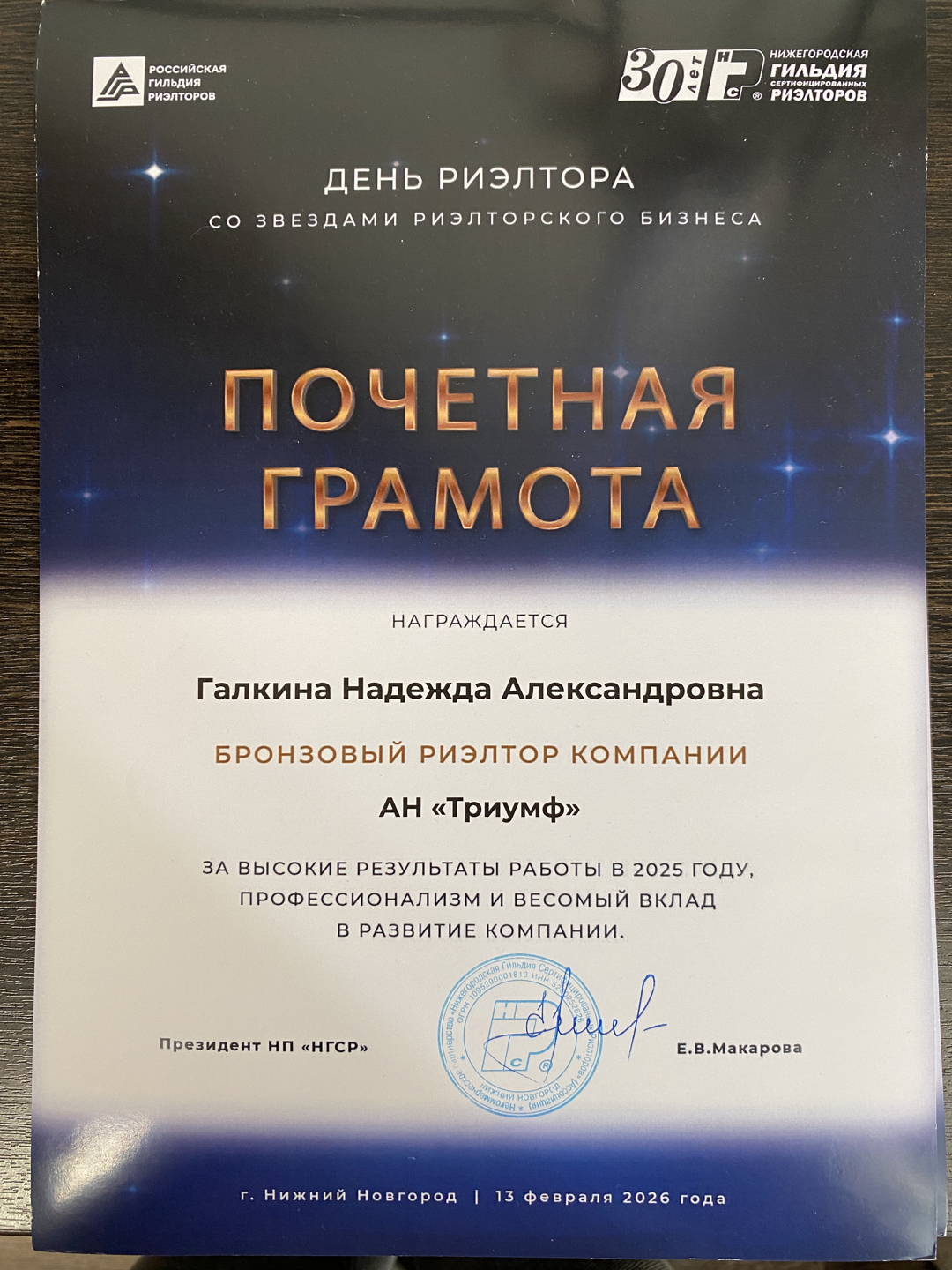 Надежда Галкина, лучший риелтор. Быстро помогла продать старую и найти квартиру мечты , внимательно подошла к нюансам сделки, нашим пожеланиям , готова в любое время ответить на любой вопрос и дать консультацию. Спасибо большое!