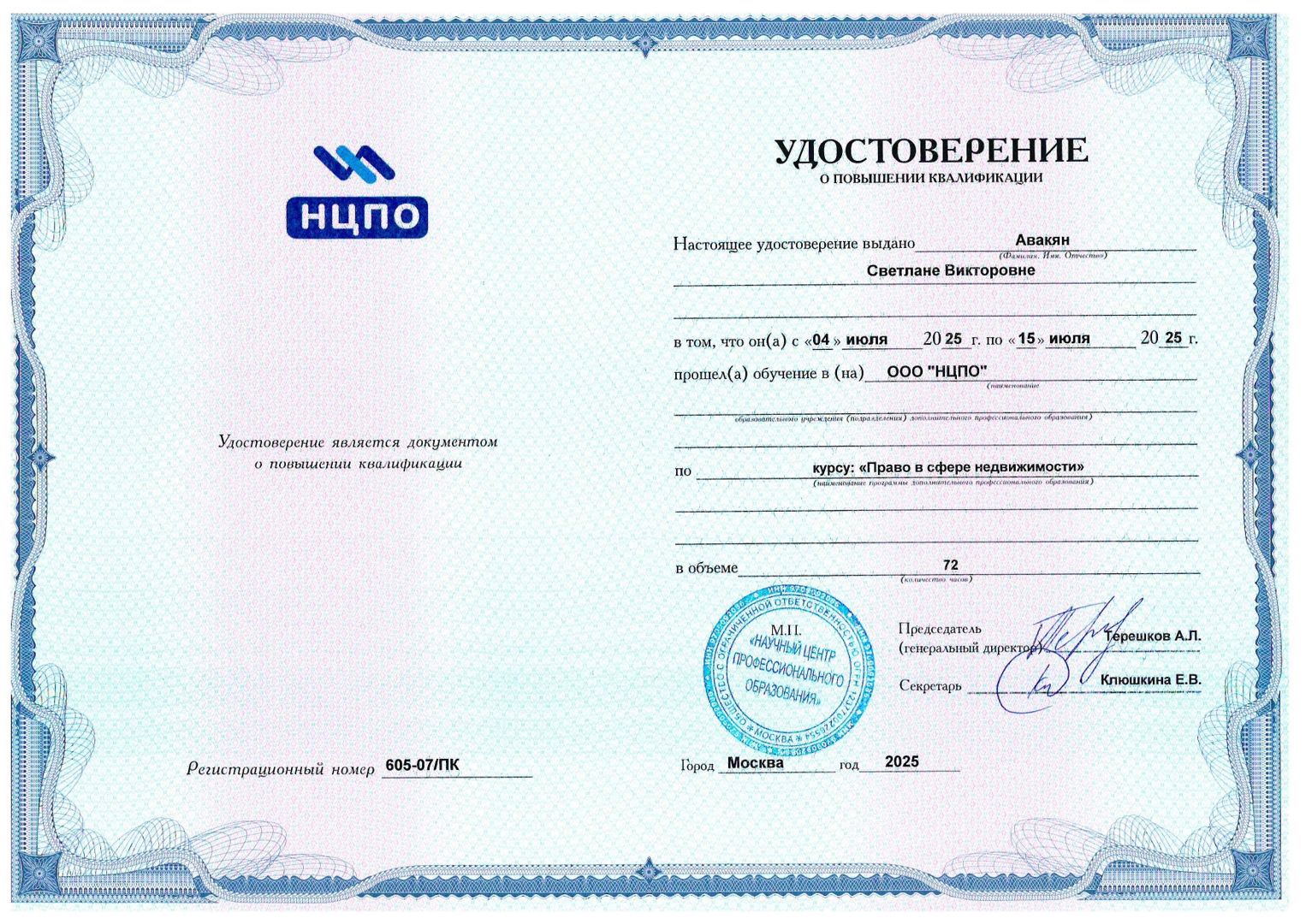 Авакян Светлана Викторовна — руководитель агентства недвижимости «Центр недвижимости Адресъ». Мы сопровождаем сделки по 44-ФЗ и госпрограммам: квартиры для сирот, расселение аварийного фонда, жильё для медиков и др. Также работаем со всеми видами недвижимости: новостройки, вторичный рынок, квартиры, дома, коммерция. Помогаем с ипотекой, проводим дистанционные сделки с сервисом безопасных...