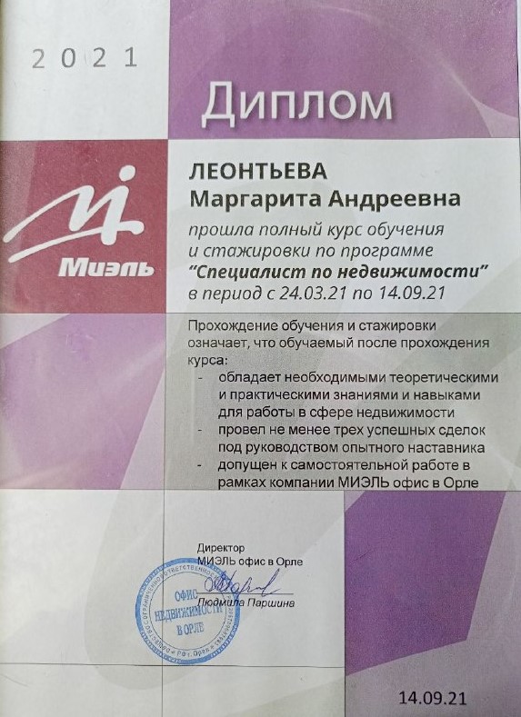 Грамотный и квалифицированный риелтор. Все сделано в сроки и при должном уровне