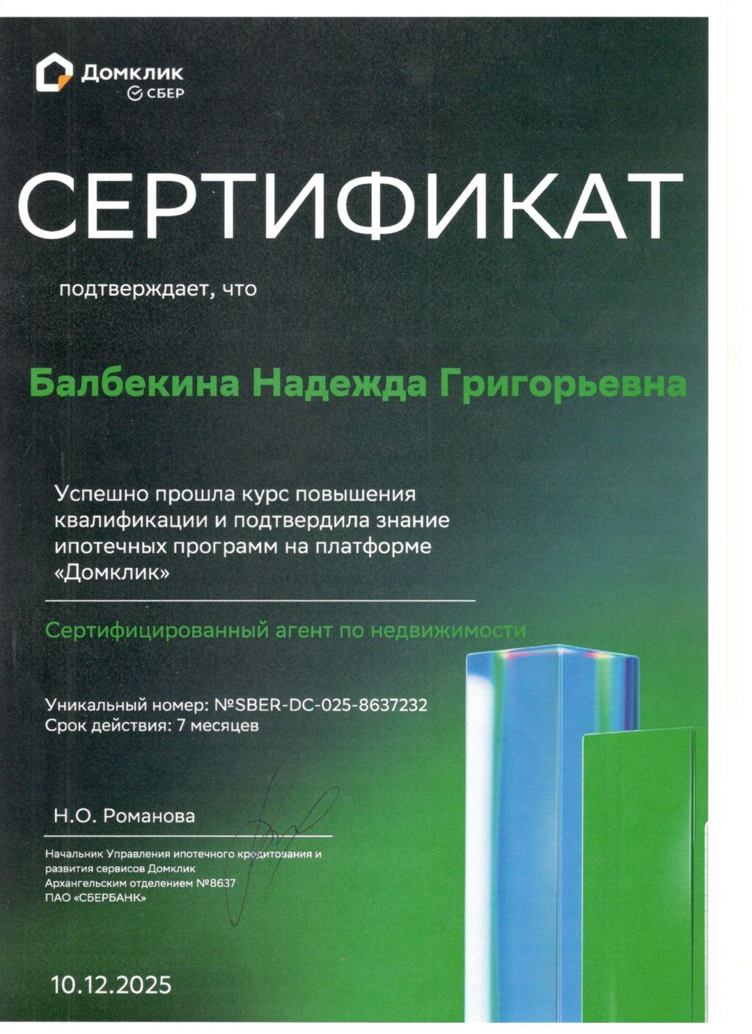 Огромное спасибо Надежде! Отличный специалист, тактичная и доброжелательная. Разложила всю информацию по полочкам, по 100 ответив на мои бесконечные вопросы. Оперативно подготовила все документы. И теперь, благодаря Надежде, я обладатель квартиры.