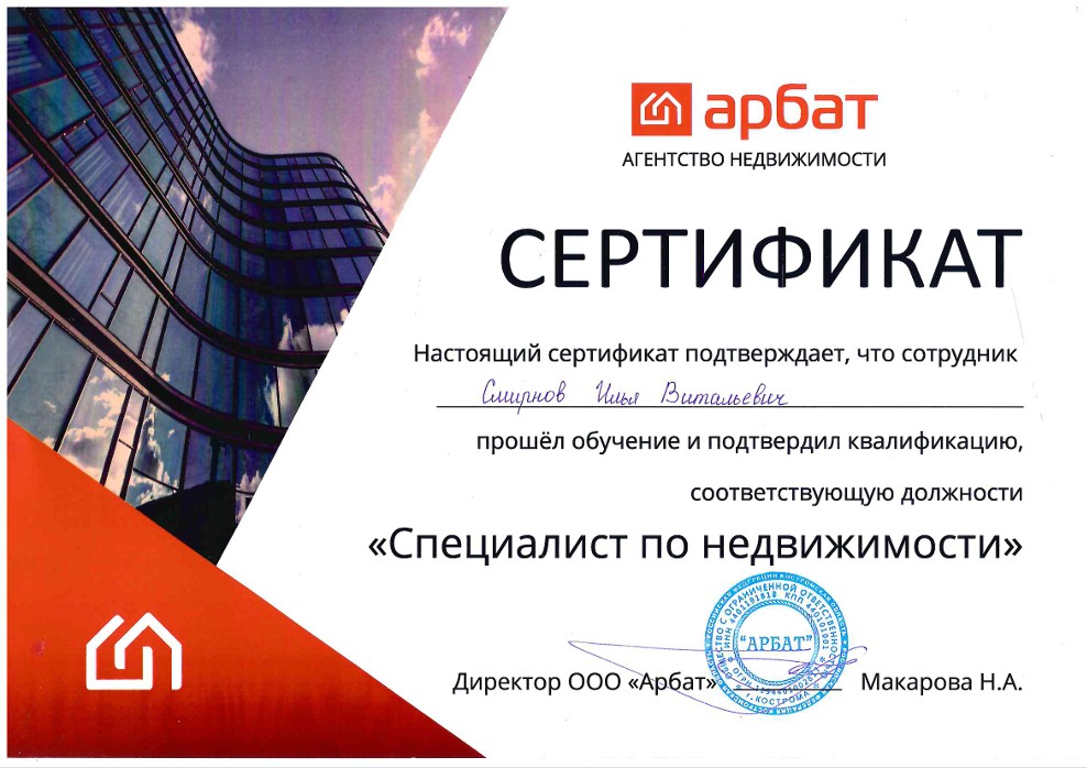 Выражаю благодарность риэлтору Смирнову Илье и агенству в целом за оказанные услуги продажи и покупки недвижимости.