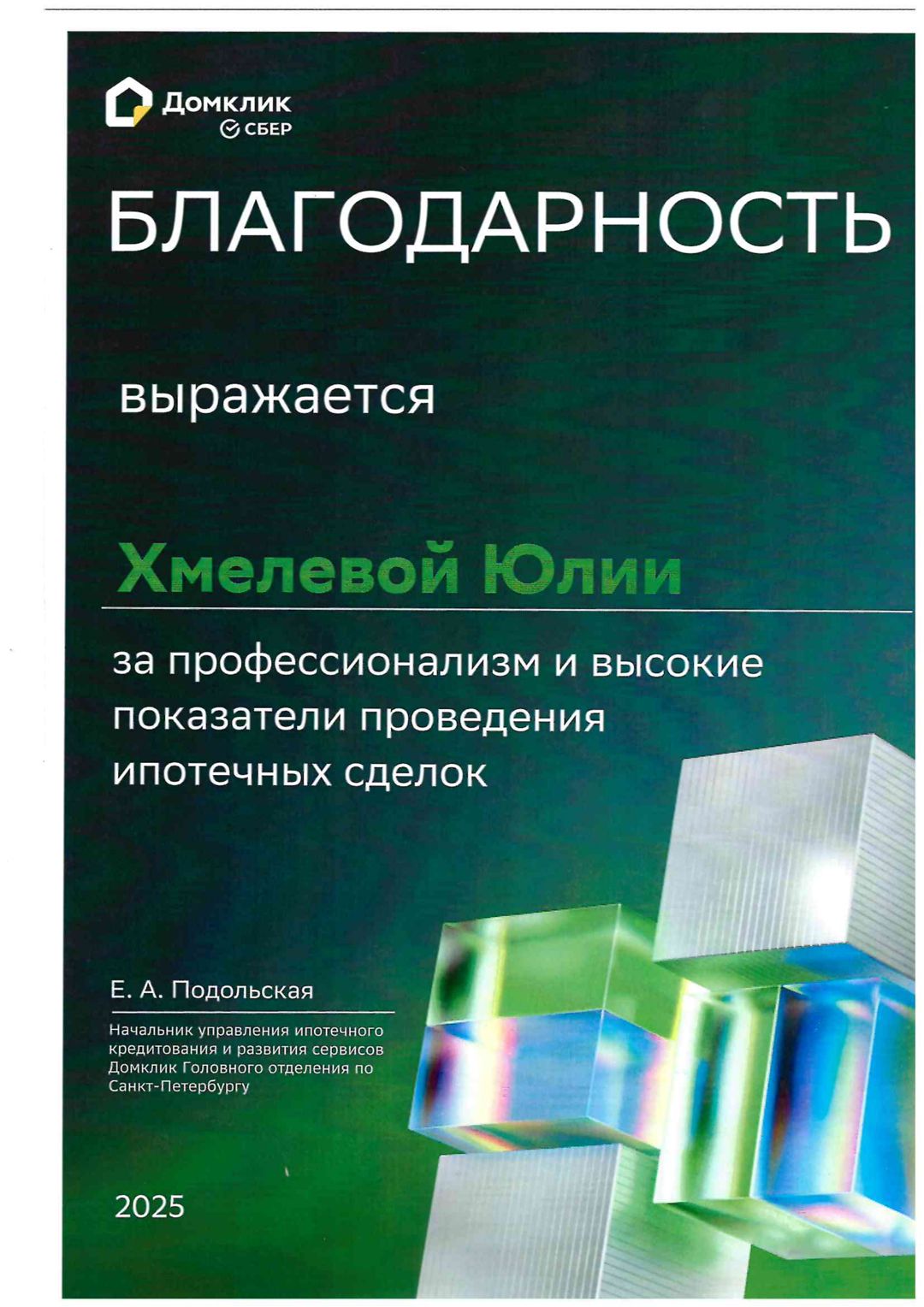 Юлия, молодец! Оперативно вводила и загружала необходимую информацию, корректировала при необходимости и поясняла в комментариях, приятно работать с такими грамотными специалистами!!! Сделка прошла на УРА! Благодарю всех сотрудников Сбербанка 🙏