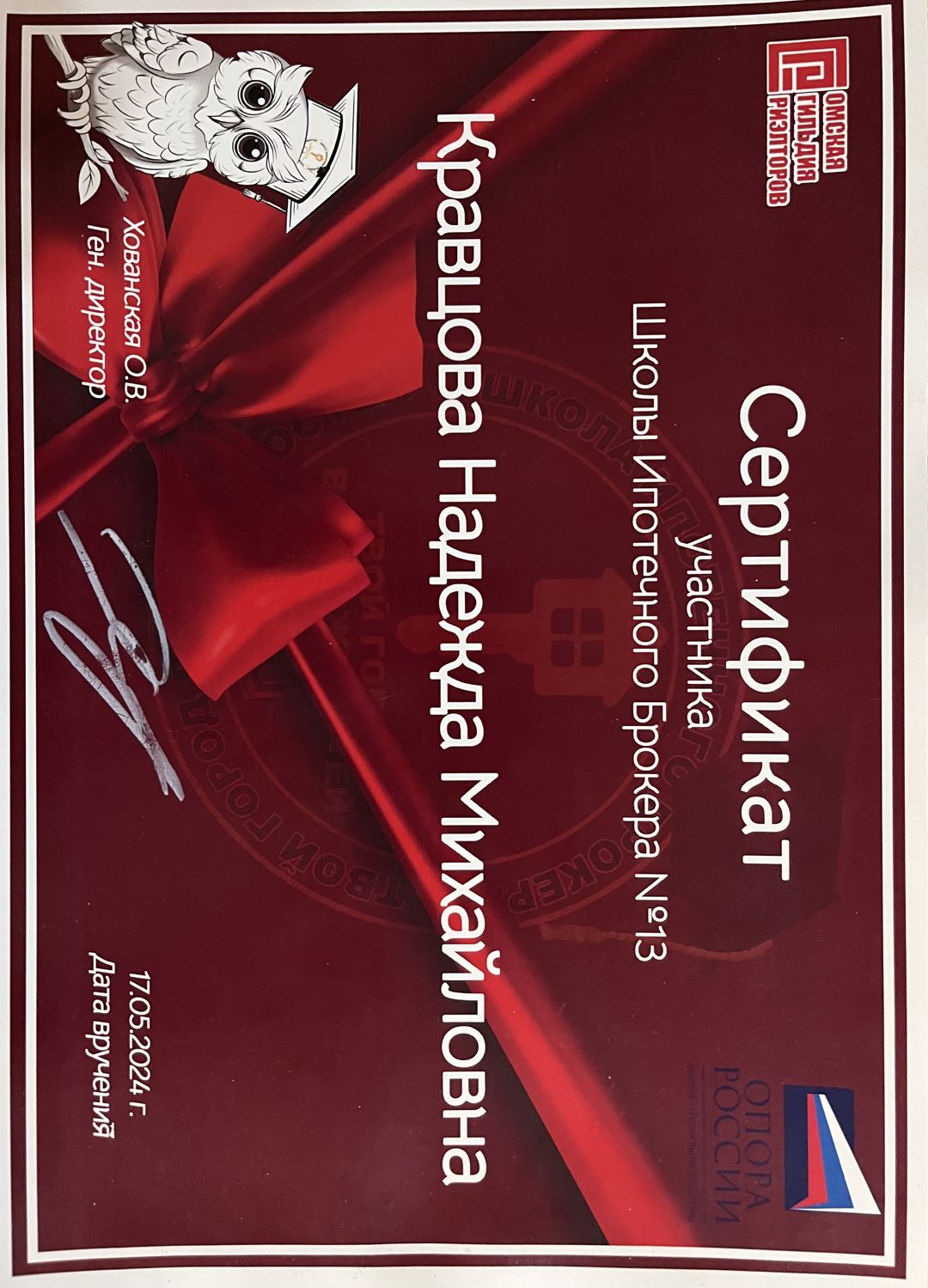 Выражаем свою благодарность Надежде, за проделанную работу с продажей квартиры, в такие небольшие сроки (и 2-х месяцев не прошло, как она нашла нам покупателей, на нашу любимую квартиру). И сопроводила эту сделку, без нашего участия , потому как мы находились в момент сделки в СПб. Однозначно, рекомендую данного риэлтора к работе по приобретению или продажи недвижимости.