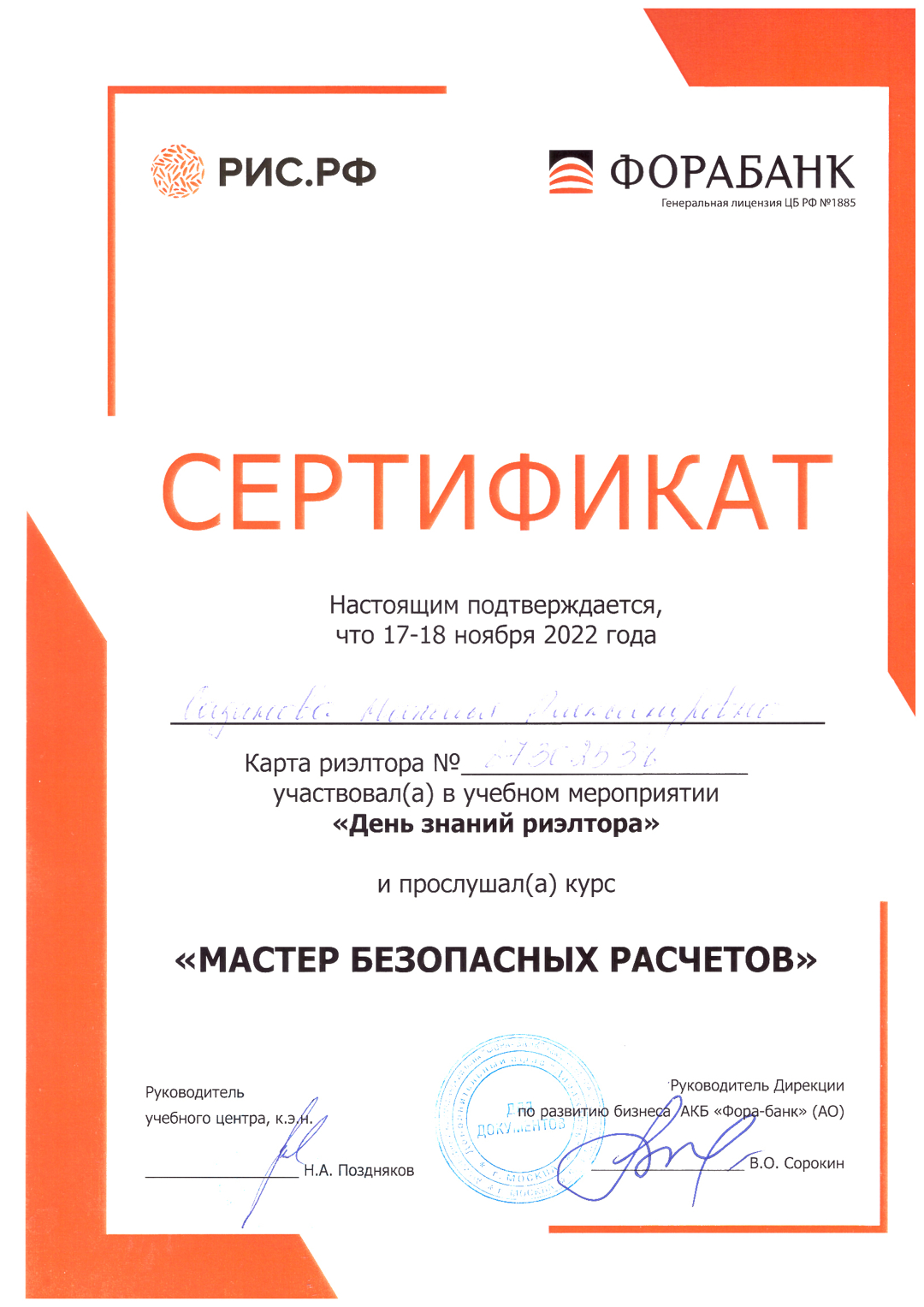 Наталья- настоящий профессионал ! Блестяще провела сделку, всегда была на связи,всегда получали от нее грамотный ответ на все свои вопросы,оценивала все риски и предлагала несколько вариантов решений. Спасибо Наталье за ее терпение и труд!