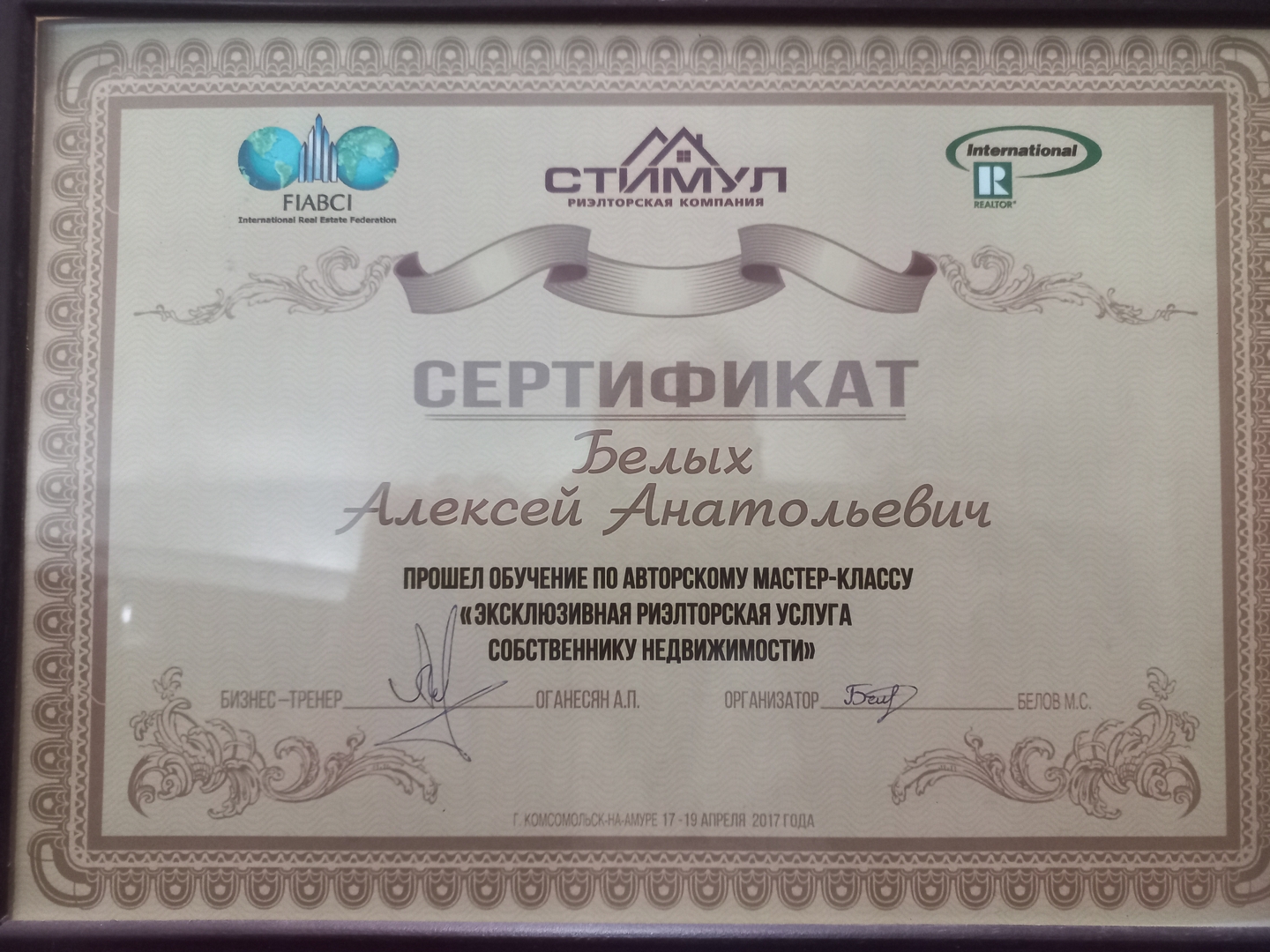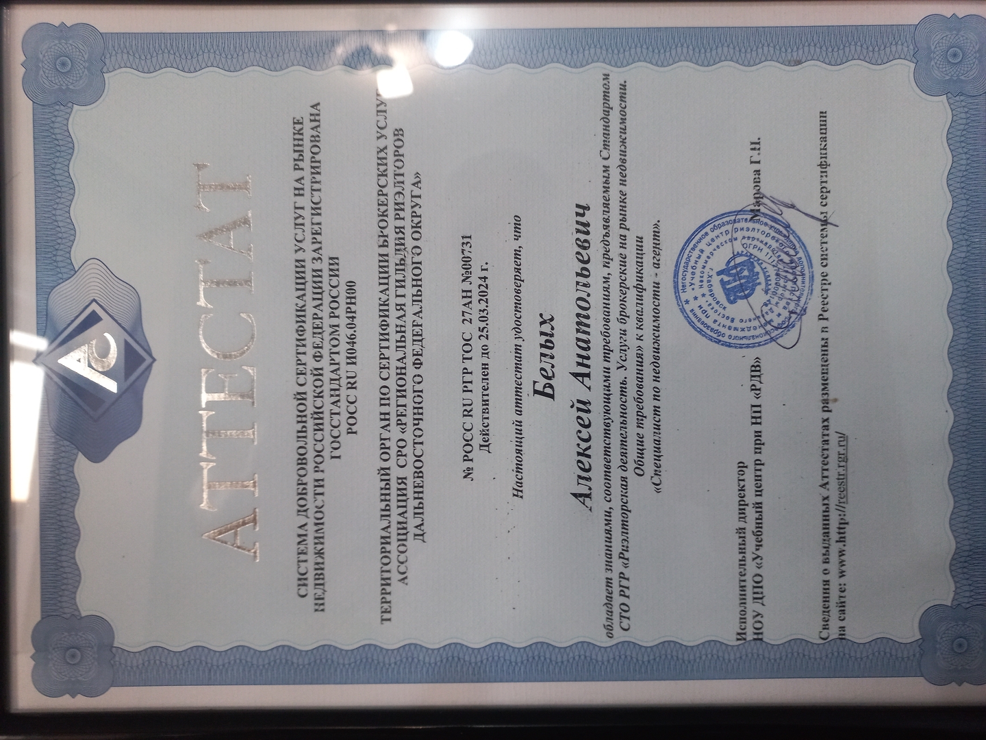 Специалист по недвижимости. Действующий Аттестат Российской Гильдии Риэлторов по ДФО
