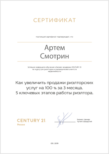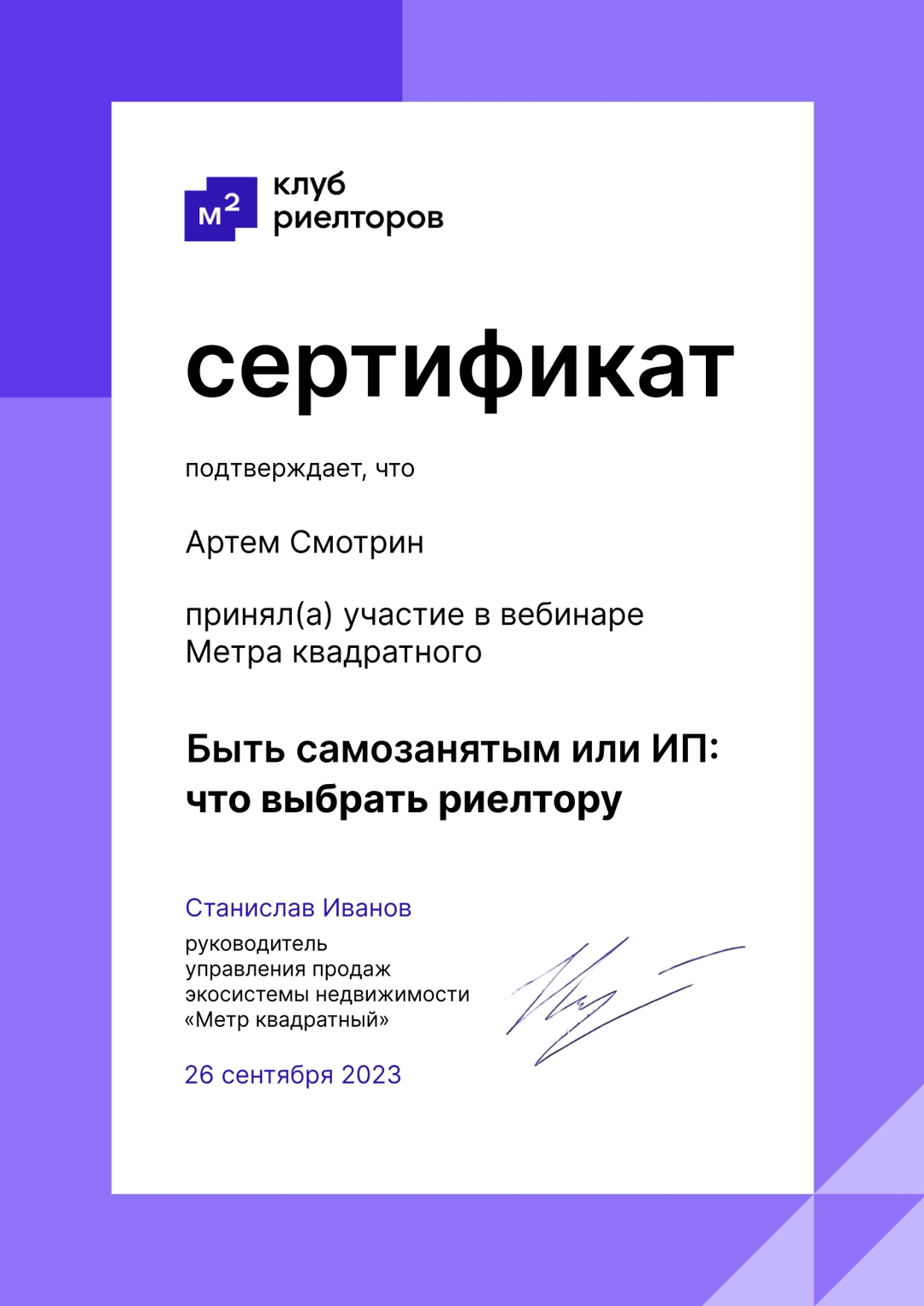 Специалист на рынке, как городской, так и загородной недвижимости. Большой опыт в проведении сделок с привлечением ипотечных кредитов. 3 года успешной работы на рынке. Более 100 сделок с недвижимостью Гарантированный результат. Безупречная репутация. Индивидуальный подход к каждому Клиенту.