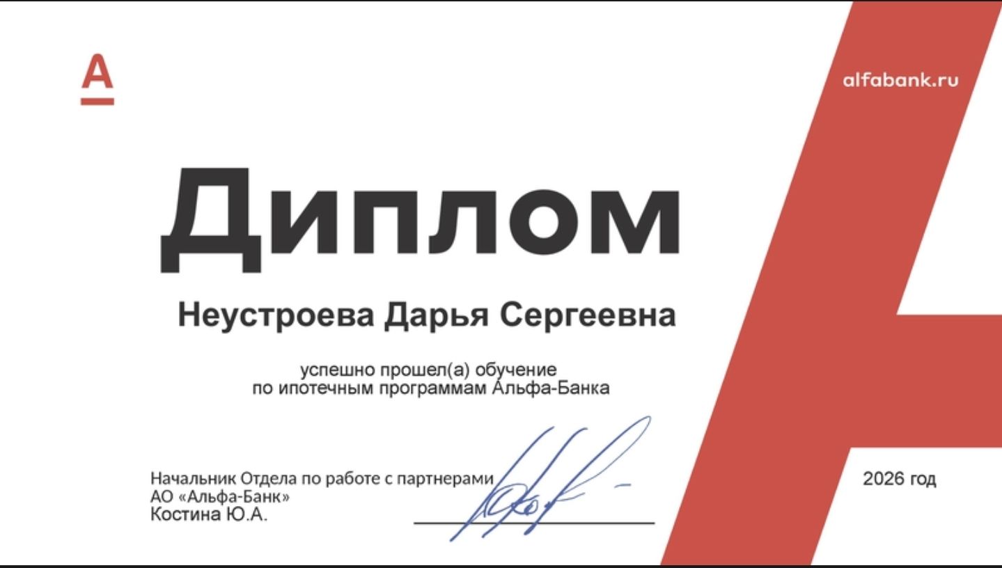 как говорит наш застройщик : Мы успели в последний вагон))) Дарья Помогла нам купить недвижимость , очень благодарны и будем ее рекомендовать.Спасибо))