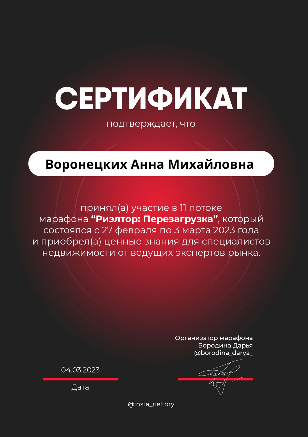 За период нашего сотрудничества с Анной, мы отметили её профессионализм и компетентность. Спасибо, за оперативность, желаем с вами сотрудничать далее.